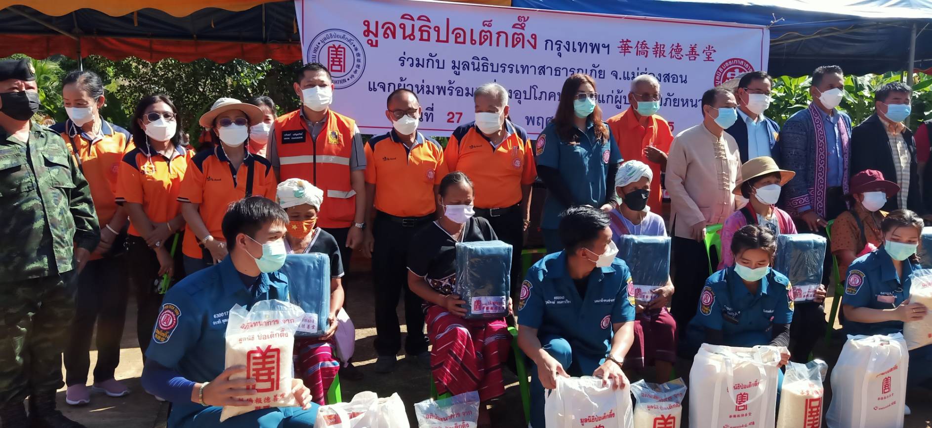 มูลนิธิป่อเต็กตึ๊งจากกรุงเทพฯ ร่วมกับมูลนิธิบรรเทาสาธารณภัย จ.แม่ฮ่องสอน จัดโครงการต้านภัยหนาว ประจำปี 2565 โดยการมอบผ้าห่มกันหนาว เครื่องกันหนาว และเครื่องอุปโภคบริโภคจำนวน 8 รายการ ให้แก่ราษฎรในเขตพื้นที่ อ.ขุนยวม จ.แม่ฮ่องสอน 1,000 ครอบครัว
