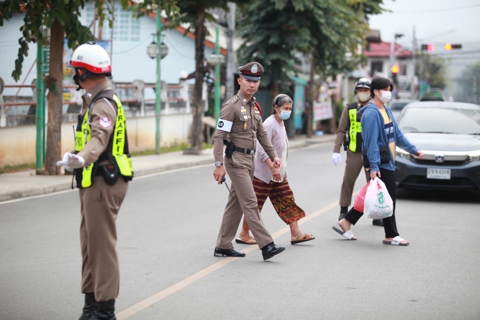 งานจราจร สภ.ปาย จ.แม่ฮ่องสอน ช่วยเหลือพาคุณยายข้ามถนนเพื่อความปลอดภัย