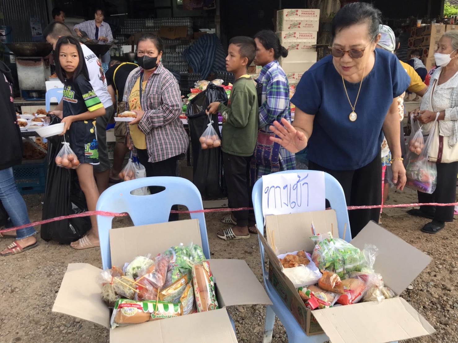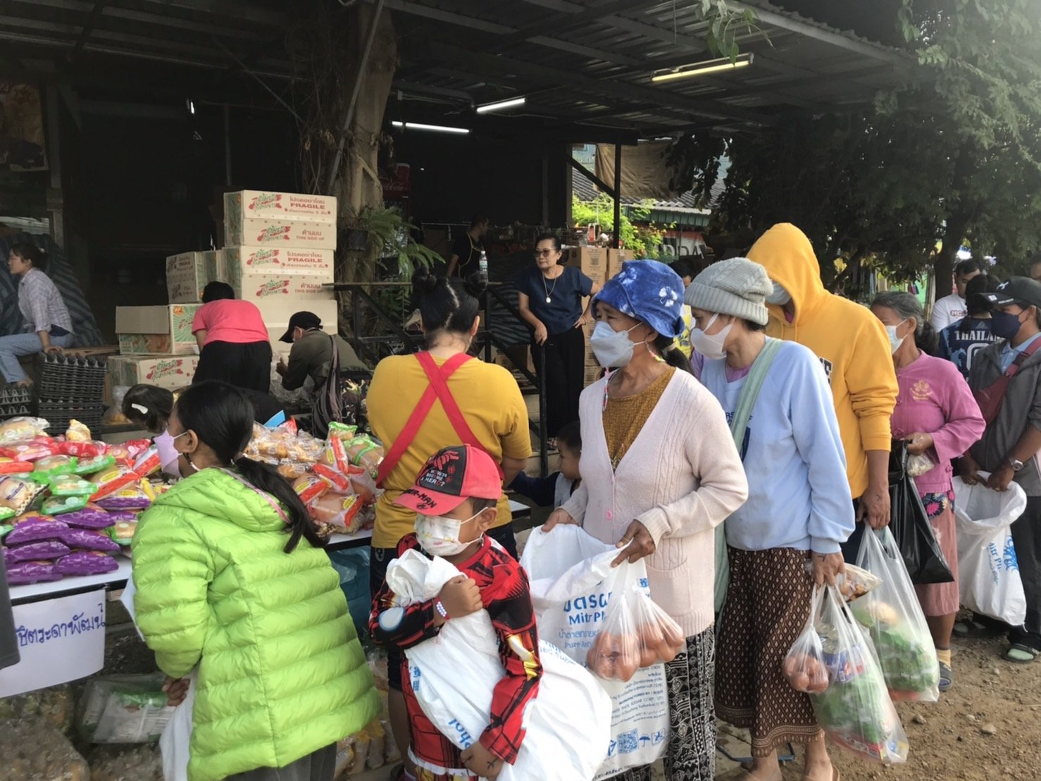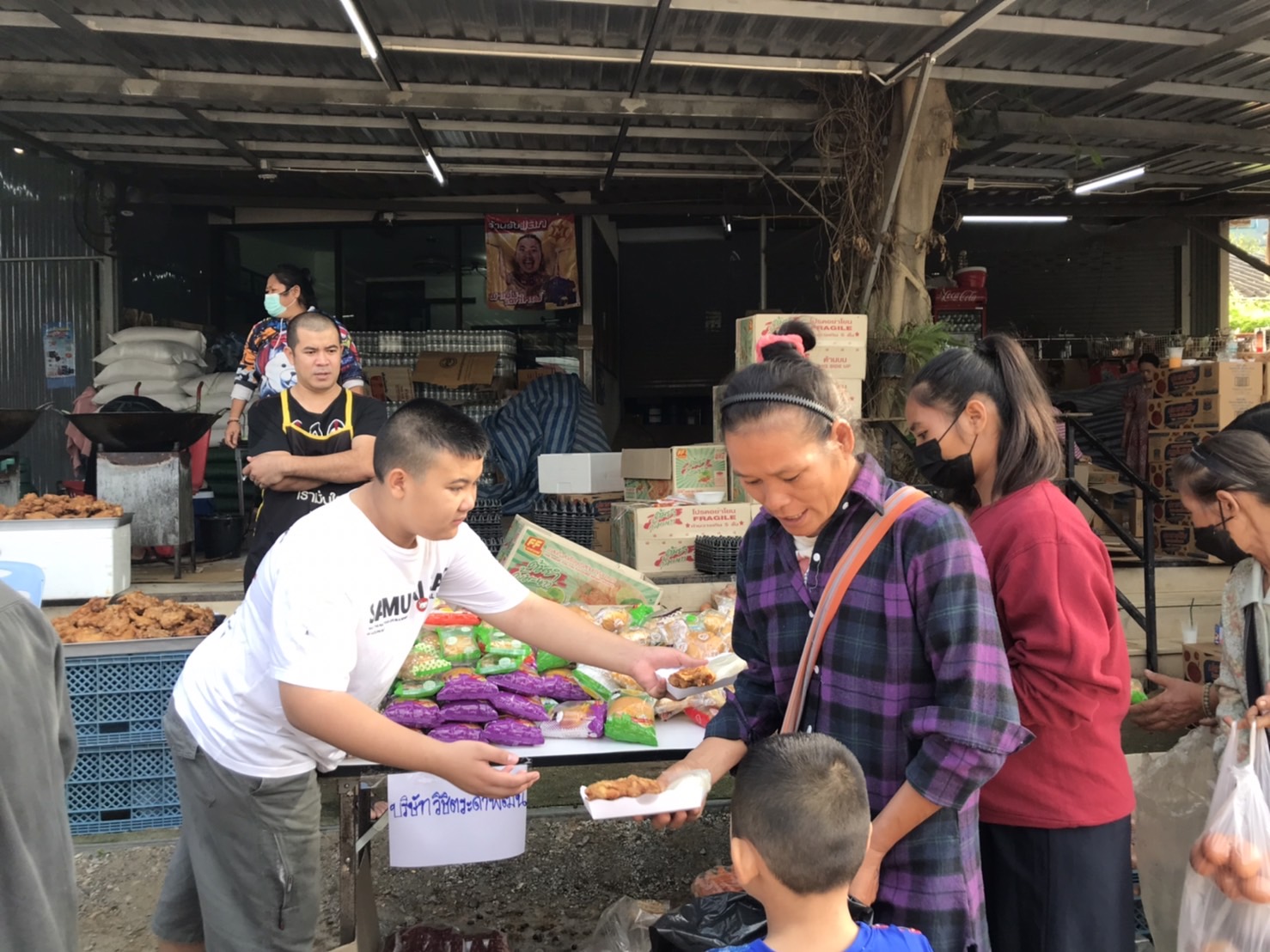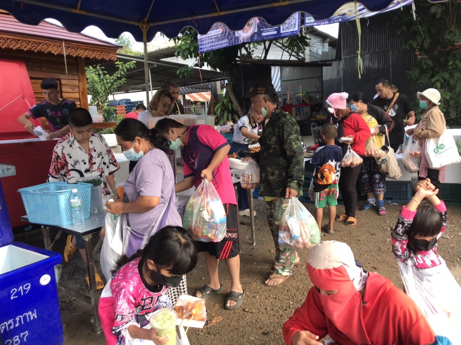 วันนี้ 5 ธ.ค. 65 นายธนวรรธน์ ดีหอม เจ้าของร้านบุญเจริญแม่สะเรียง ร่วมกับ เครือข่ายพันธมิตร โรงน้ำดื่ม นะโม โรงบรรจุ PT บจก.ม่วงเพ็ชรมาร์เก็ตติ้ง วิชิตการค้า โรงงานลูกชิ้นพรสวรรค์ โรงงานไส้กรอกเจ๊อัมพร ร่วม แจกจ่ายอาหารแห้ง มาม่า ไข่ แปรงฟัน ยาสีฟัน สบู่ ขนม และ อาหารปรุงสุก มีข้าวเหนียวไก่ทอด ทอดมันปลากราย ลูกชิ้นไส้กรอกทอด ส้มตำ น้ำดื่ม น้ำชง แก่พี่น้องประชาชนในพื้นที่ บริเวณหน้าร้านบุญเจริญแม่สะเรียง ถนนสาย 108 อ.แม่สะเรียง จ.แม่ฮ่องสอน เพื่อถวายเป็นพระราชกุศลแด่ “พ่อหลวง” รัชกาลที่ 9