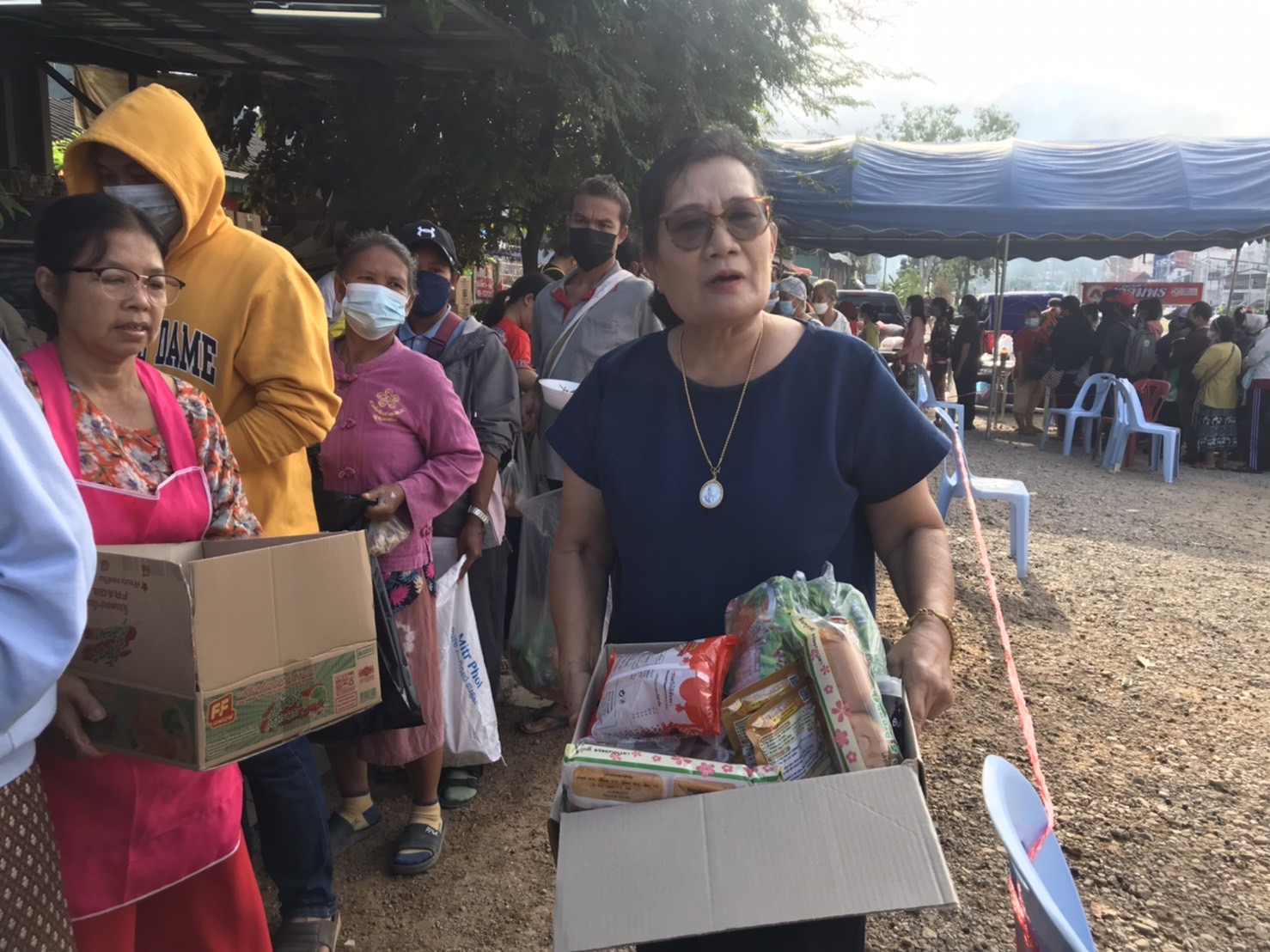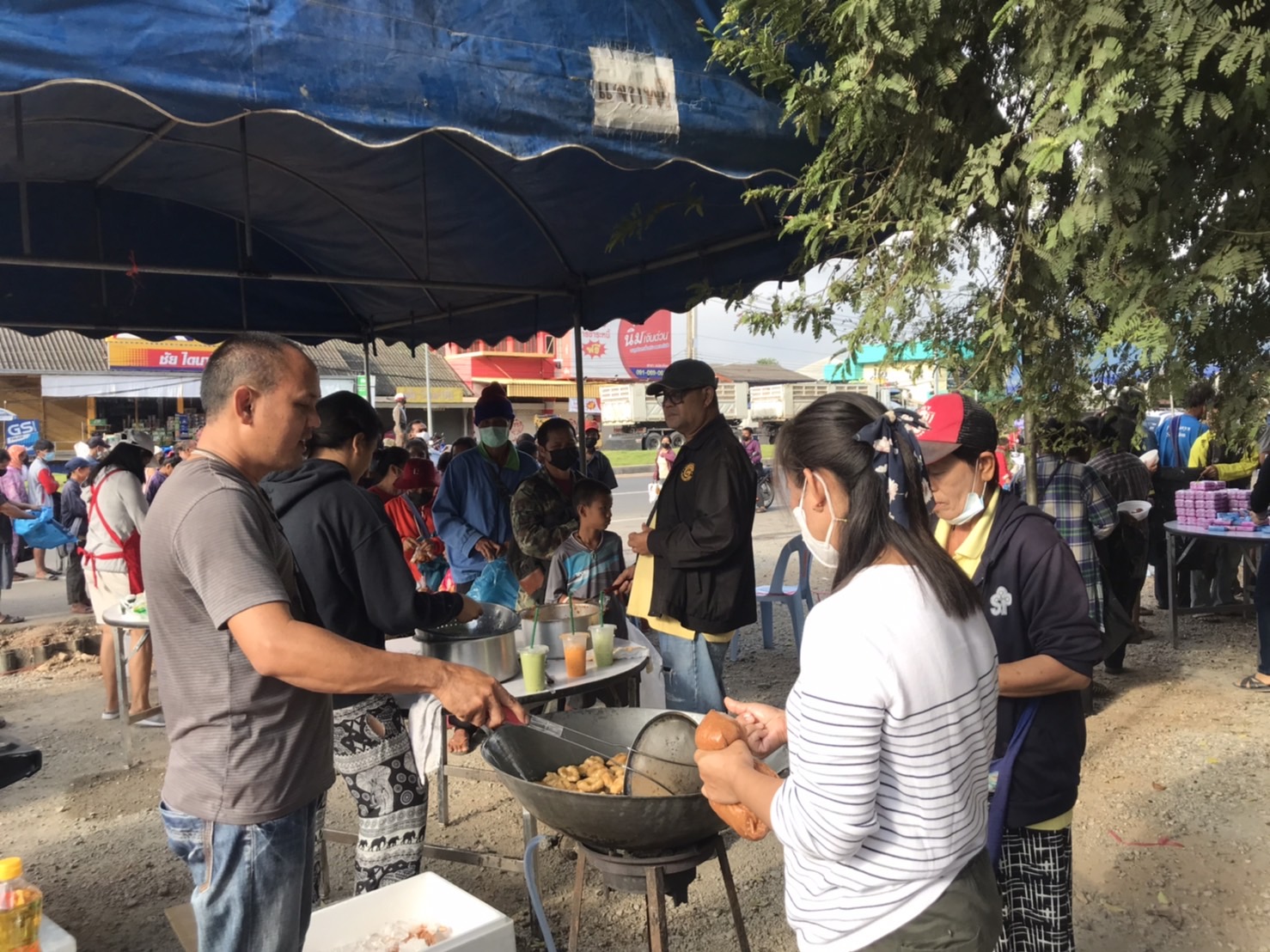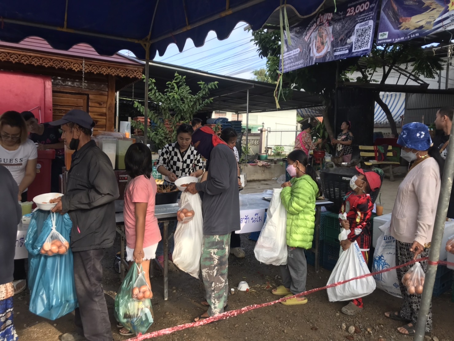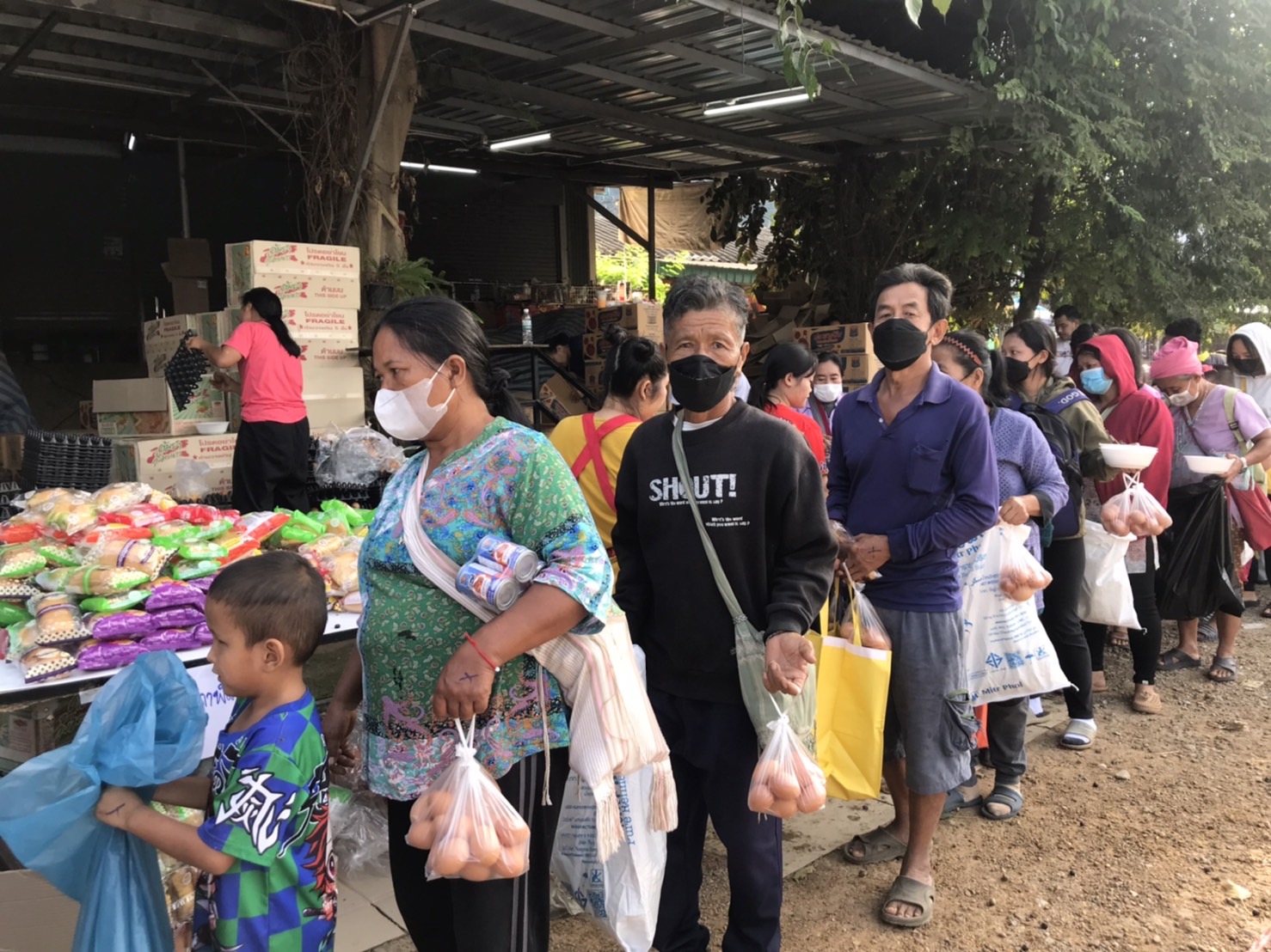 วันนี้ 5 ธ.ค. 65 นายธนวรรธน์ ดีหอม เจ้าของร้านบุญเจริญแม่สะเรียง ร่วมกับ เครือข่ายพันธมิตร โรงน้ำดื่ม นะโม โรงบรรจุ PT บจก.ม่วงเพ็ชรมาร์เก็ตติ้ง วิชิตการค้า โรงงานลูกชิ้นพรสวรรค์ โรงงานไส้กรอกเจ๊อัมพร ร่วม แจกจ่ายอาหารแห้ง มาม่า ไข่ แปรงฟัน ยาสีฟัน สบู่ ขนม และ อาหารปรุงสุก มีข้าวเหนียวไก่ทอด ทอดมันปลากราย ลูกชิ้นไส้กรอกทอด ส้มตำ น้ำดื่ม น้ำชง แก่พี่น้องประชาชนในพื้นที่ บริเวณหน้าร้านบุญเจริญแม่สะเรียง ถนนสาย 108 อ.แม่สะเรียง จ.แม่ฮ่องสอน เพื่อถวายเป็นพระราชกุศลแด่ “พ่อหลวง” รัชกาลที่ 9