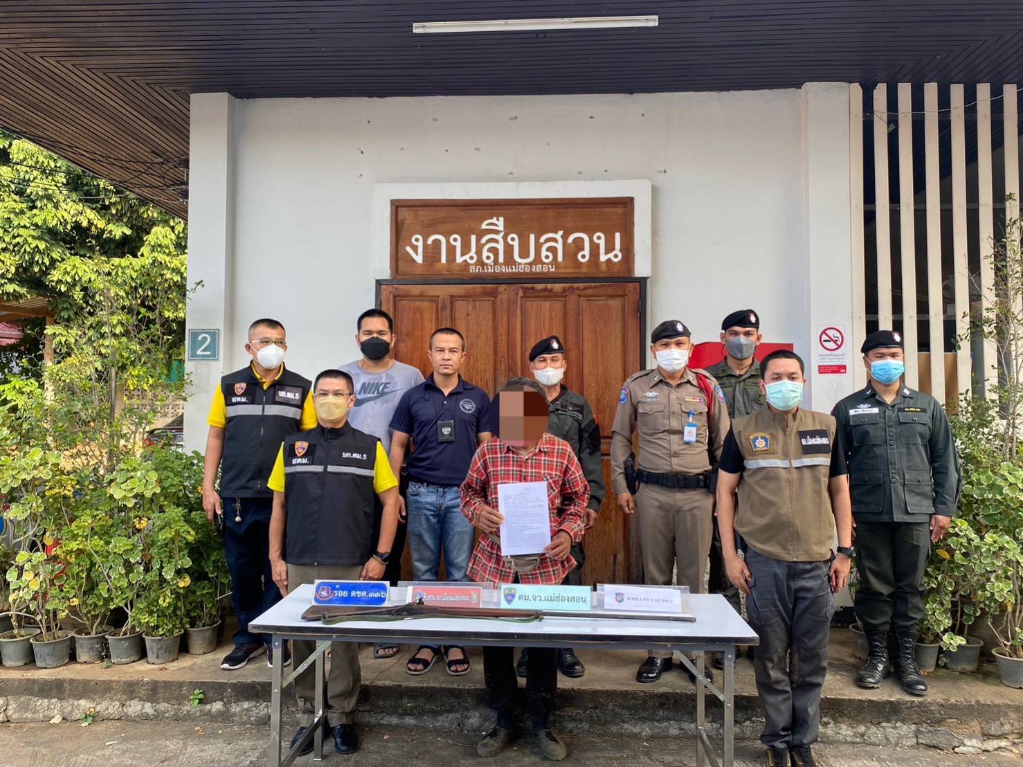 ตำรวจท่องเที่ยวแม่ฮ่องสอน ฟิตจัดนำกำลังจับกุมอาวุธปืน ในกระท่อมกลางสวน บ้านห้วยผา ต.ห้วยผา อ.เมืองแม่ฮ่องสอน