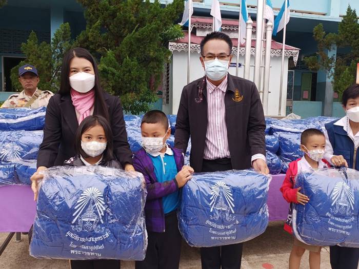มอบผ้าห่มกันหนาวพระราชทาน จากมูลนิธิราชประชานุเคราะห์ ในพระบรมราชูปถัมภ์ ให้แก่นักเรียนพักนอน เพื่อถวายเป็นพระราชกุศลแด่สมเด็จพระเจ้าลูกเธอ เจ้าฟ้าพัชรกิติยาภา นเรนทิราเทพยวดี กรมหลวงราชสาริณีสิริพัชร มหาวัชรราชธิดา