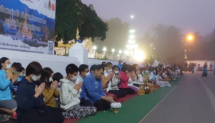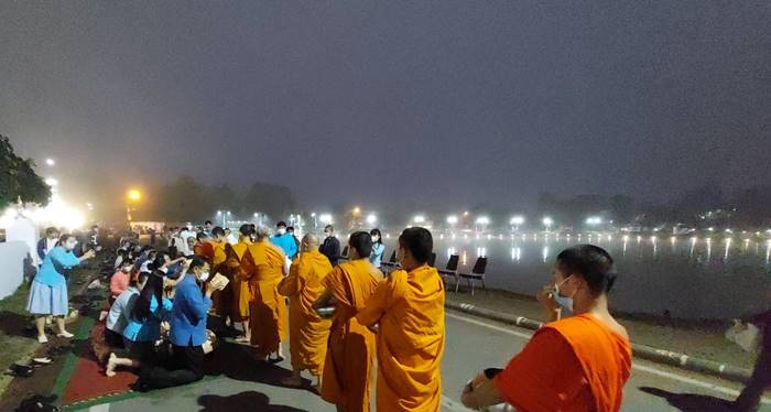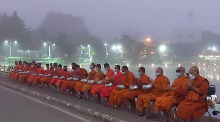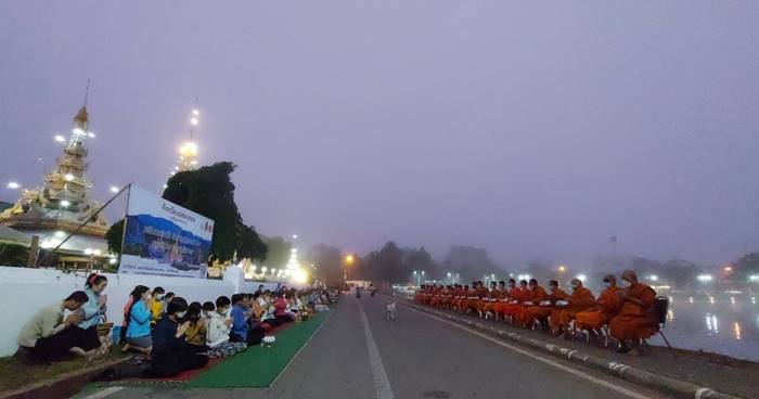 จังหวัดแม่ฮ่องสอน จัดกิจกรรมพลังบวรร่วมใจ สืบสานวัฒนธรรมไทย สวมผ้าไทย ทำบุญตักบาตรทุกวันพระ ท่ามกลางสายหมอก ขณะที่มีประชาชนและนักท่องเที่ยว ร่วมกันตักบาตรจำนวนมาก