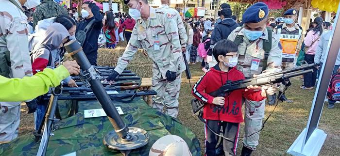 ภายในงานมีการละเล่นมากมาย เพื่อให้เด็กได้แสดงความสามารถ พร้อมแจกอาหาร อุปกรณ์เครื่องเขียน และของเล่นต่าง ๆให้กับเด็กอย่างทั่วถึง ขณะที่ทหารหน่วยเฉพาะกิจสิงหนาท และกองร้อย อส.จ.แม่ฮ่อง สอนที่ 1 ได้นำอาวุธยุทโธปกรณ์ทางการรบ มาแสดงให้เด็กได้สัมผัสกันอย่างใกล้ชิด พร้อมบริการตัดผมฟรีให้กับเด็กที่มาร่วมงาน ส่วนทางด้านสำนักงานป้องกันและบรรเทาสาธารณภัย จ.แม่ฮ่องสอนได้จัดทำสะพานเชือกให้เด็กได้ไต่ข้ามอย่างตื่นเต้น