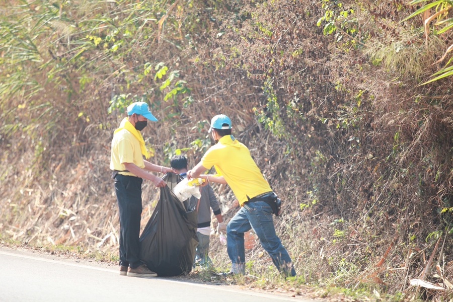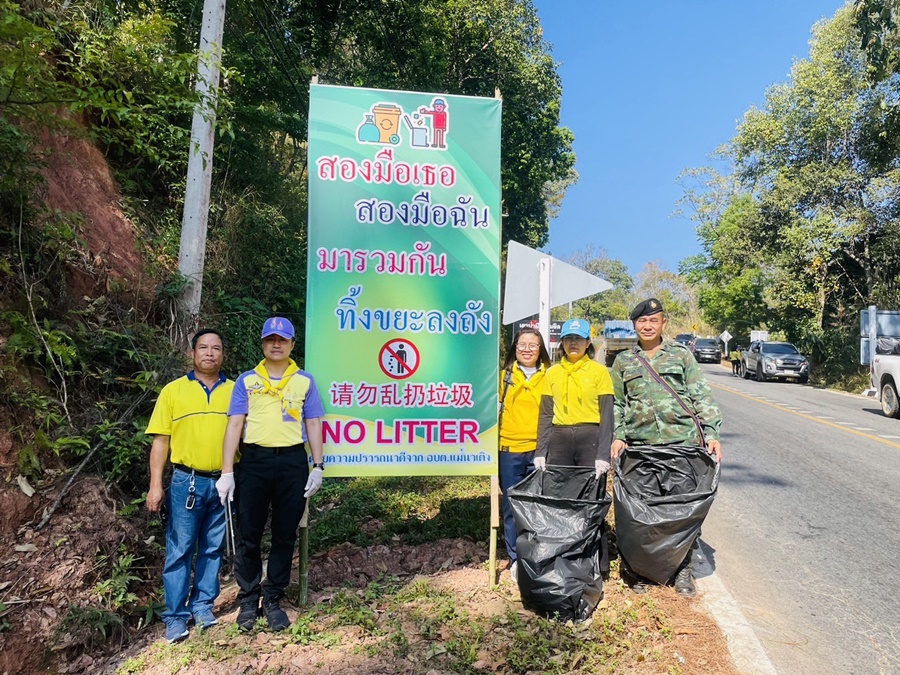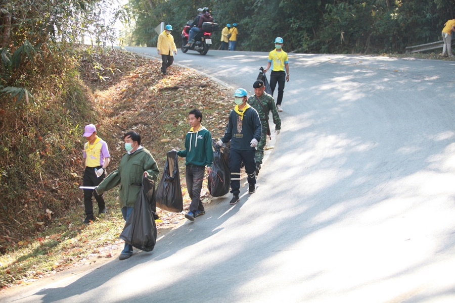 นายอำเภอปาย จ.แม่ฮ่องสอน นำจิตอาสาพระราชทาน หัวหน้าส่วนราชการ พ่อค้าและประชาชน เก็บขยะสองข้างทางหลวง ตั้งแต่จุดชมวิวกิ่วลม-ค่ายโสณบัณฑิตย์ ระยะทางกว่า 20 กม. เพื่อสร้างจิตสำนึกไม่ทิ้งขยะลงข้างถนน