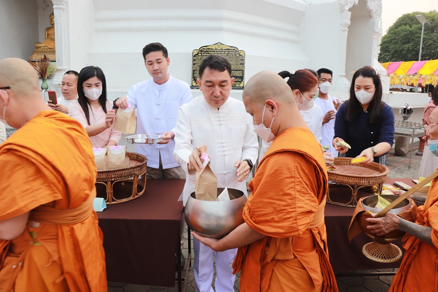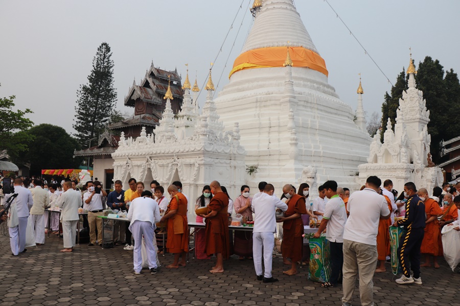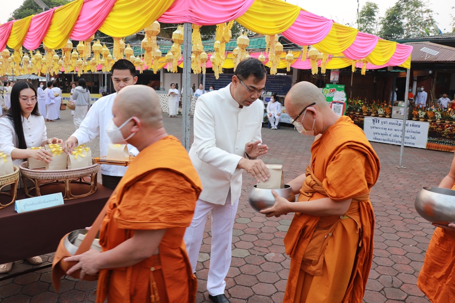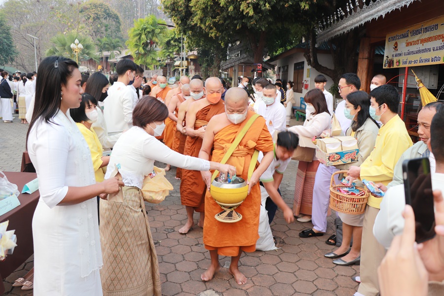 ผู้ว่าราชการจังหวัดแม่ฮ่องสอน นำหัวหน้าส่วนราชการและพุทธศาสนิกชน ร่วมทำบุญตักบาตรข้าวสาร อาหารแห้ง เนื่องในเทศกาลวันมาฆบูชา
