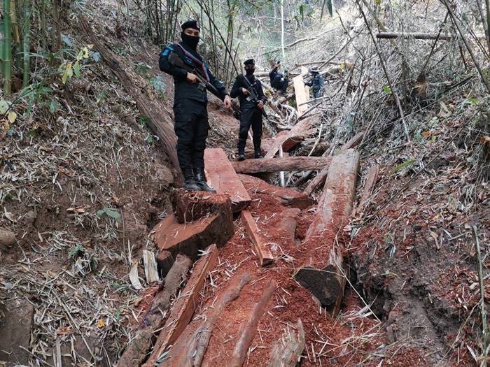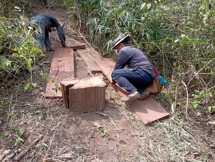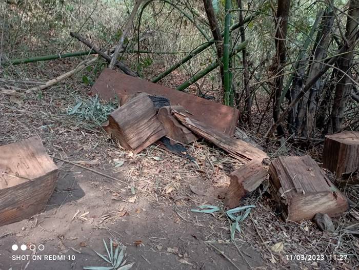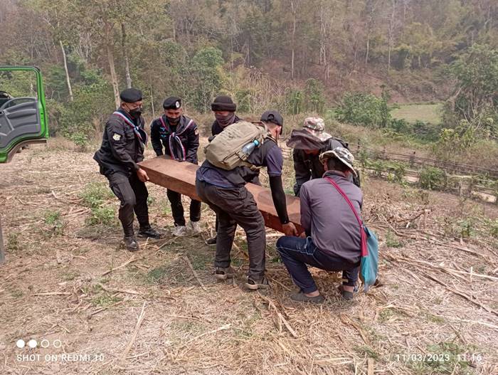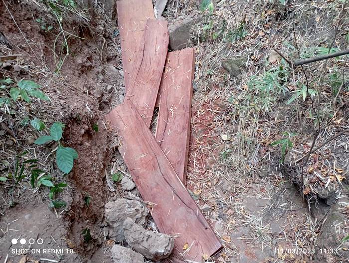เมื่อ 11 มี.ค.66 เวลา 10.00 น. ฉก.ทพ.36 โดย ร้อย.ทพ.3606 จัดกำลังพล 1 ชป.สนธิกกำลังร่วมกับ หน่วยป้องกันและรักษาป่าที่ มส.3(ขุนยวม) ,มว.ตชด.ที่3362 ร่วมกันลาดตระเวนพิสูจน์ทราบ การกระทำผิด พรบ.ป่าไม้ บริเวณป่าบ้านหนองแดง หย่อมบ้านแม่สะเป่เหนือ ม.6 ต.ขุนยวม อ.ขุนยวม จว.ม.ส. ผลการปฏิบัติ ตรวจพบ/ตรวจยึด เลื่อยโซ่ยนต์ยี่ห้อสติล รุ่น เอ็มเอส 382 สีส้ม จำนวน 1 เครื่อง พร้อมบาร์ขนาด 22 นิ้ว 1 อัน การแปรรูปไม้ประดู่ด้วยเลื่อยโซ่ยนต์ ขนาดและจำนวนดังนี้