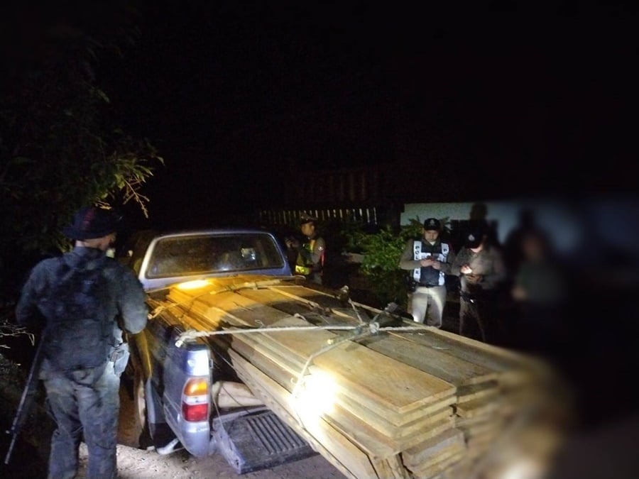 เจ้าหน้าที่เขตรักษาพันธุ์สัตว์ป่าแม่ยวมฝั่งขวา และชุดสายตรวจปราบปราม ประจำ สบอ.16 ตรวจยึดจับกุม รถยนต์กระบะ 1 คัน พร้อมไม้สักแปรรูปจำนวนมาก ขณะที่ผู้ต้องหาอาศัยความมืดหลบหนีไปได้