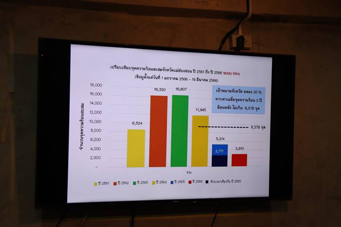 วันที่ 20 มีนาคม 2566 เวลา 16.00 น. ที่ศูนย์ปฏิบัติการไฟป่าจังหวัดแม่ฮ่องสอน นายเชษฐา โมสิกรัตน์ ผู้ว่าราชการจังหวัดแม่ฮ่องสอน พร้อมด้วย นายประเสริฐ จิตตพลีชีพ รองผู้ว่าราชการจังหวัดแม่ฮ่องสอน ประชุมคณะทำงานศูนย์ปฏิบัติการไฟป่าจังหวัดแม่ฮ่องสอนเพื่อสรุปสถานการณ์หมอกควันไฟป่าในพื้นที่จังหวัดแม่ฮ่องสอนหลังเกิดจุดความร้อนในหลายพื้นที่