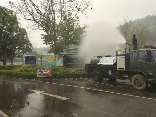 ที่อำเภอเมืองแม่อ่องสอน หน่วยเฉพาะกิจสิงหนาท (ร.17) ร่วมกับ ส่วนราชการหน่วยงานเกี่ยวข้อง ร่วมกันจัดรถบรรทุกน้ำ ฉีดน้ำเพื่อลดฝุ่นละอองขนาดเล็ก และสร้างความชุ่มชื้นในอากาศ และสร้างความรู้ความเข้าใจให้ประชาชนตระหนักถึงผลกระทบของปัญหาหมอกควันและฝุ่นละอองขนาดเล็ก PM 2.5 ให้แก่หน่วยงานและประชาชนในพื้นที่ ณ สนามหน้าโรงเรียนเทศบาล ต.ปางหมูอ.เมืองแม่ฮ่องสอน