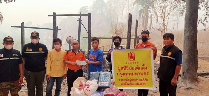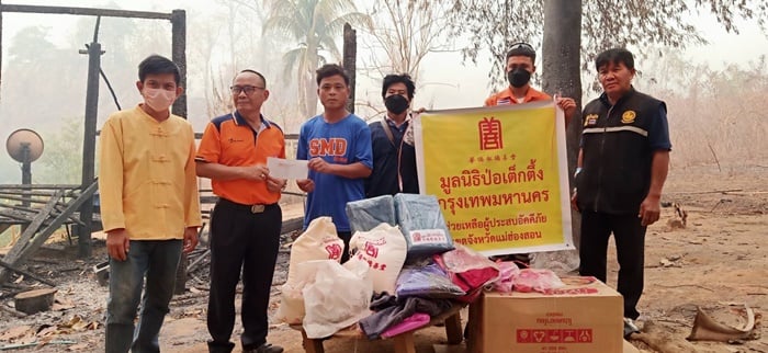 เมื่อวันที่ 31 มีนาคม 2566 มูลนิธิป่อเต็กตึ๊งจากกรุงเทพฯ ได้ร่วมกับมูลนิธิบรรเทาสาธารณภัยจังหวัดแม่ฮ่อง สอน นำเงินและสิ่งของไปมอบช่วยเหลือแก่ราษฎร ที่บ้านไม้เดื่อโง้ม ต.ผาบ่อง อ.เมืองแม่ฮ่องสอน ที่ประ สบเหตุบ้านเรือนถูกไฟป่าลุกลามเข้าไหม้เสียหายวอดทั้งหลัง ซึ่งขณะเกิดเหตุคนในบ้านออกไปรับจ้างทำงานไม่มีใครอยู่บ้านข้าวของทุกอย่าง จึงถูกเผาผลาญทั้งหมด ต้องไปอาศัยหลับนอนกับเพื่อนบ้านเป็นการชั่วคราว