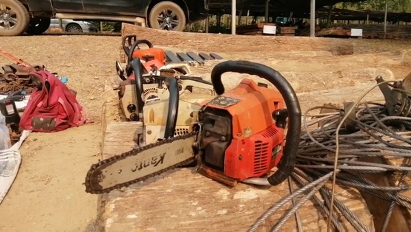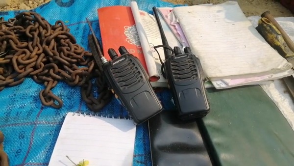 พบวิทยุสื่อสารแบบมือถือ จำนวน 2 เครื่อง วางอยู่และเมื่อเจ้าหน้าที่ตรวจสอบวิทยุสื่อสารทั้ง 2 เครื่อง ใช้การได้ตามปกติ ซึ่งคาดว่าน่าจะใช้ในการติดต่อสื่อสาร เช็คความเคลื่อนไหวของเจ้าหน้าที่ ตรวจบริเวณหลังกระบะรถยนต์หมายเลขทะเบียน ขค xxxx จังหวัดแม่ฮ่องสอน ตรวจพบเลื่อยโซ่ยนต์นำซุกซ่อนอยู่ในถุงปุ๋ย จำนวน 2 กระสอบโดย 1 กระสอบ จะนำเลื่อยโซ่ยนต์ซุกซ่อนไว้ จำนวน 2 ตัว รวมทั้งหมด จำนวน 4 ตัว และตรวจพบบาร์เลื่อยโซ่ยนต์ขนาด 24 นิ้ว จำนวน 2 อัน และ ขนาด 20 นิ้ว จำนวน 2 อัน และขนาด 13 นิ้ว 2 ตัว วางซุกซ่อนอยู่บริเวณใต้เปาะ และโซ่เลื่อยยนต์ ยาว 27 นิ้ว จำนวน 7 เส้น ยาว 23 นิ้ว จำนวน 4 เส้น ยาว 16 นิ้ว จำนวน 2 เส้น ตรวจพบอุปกรณ์ลอกโซ่แบบใช้มือซาวพบลวดสลิงและอุปกรณ์ต่างๆวางไว้อยู่บริเวณหลังกระบะรถยนต์คันดังกล่าว