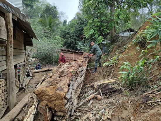 เมื่อ 13 พ.ค. 66 เวลา 09.00-15.00 น. ฉก.สิงหนาท (ร.17) โดย ร้อย.ร.713 จัดกำลังพลร่วมกับ อบต.ปางหมู , อสม., ผู้นำชุมชน และราษฎรในพื้นที่ร่วมกันช่วยเหลือผู้ประสบภัยวาตภัยเหตุต้นไม้ล้มทับที่อยู่อาศัย ณ บ้านกะเหรี่ยงคอยาวในสอย ตำบลปางหมู อำเภอเมือง จังหวัดแม่ฮ่องสอน โดยสภาพบ้านเรือนพังเสียหายทั้งหลัง ทั้งนี้หน่วยงานที่เกี่ยวข้องจะดำเนินเข้าให้การช่วยเหลือผู้ประสบภัยต่อไป