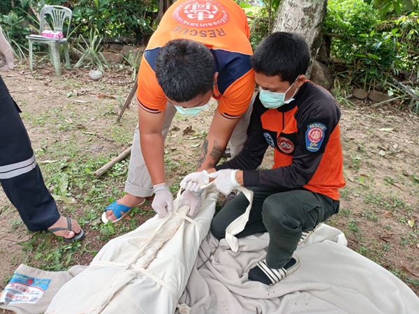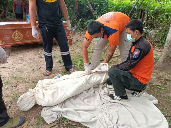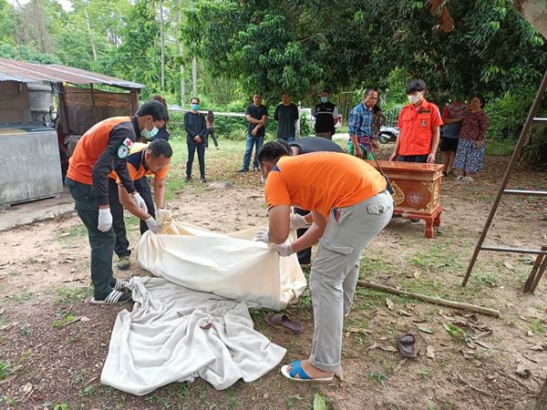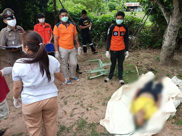 เมื่อไปถึงพบบ้านที่เกิดเหตุตั้งอยู่บริเวณท้ายหมู่บ้าน พบศพชายชราใช้เชือกไนล่อนแขวนคอห้อยโตงเตงติดกับต้นมะม่วงบริเวณหน้าหน้าบ้าน สภาพศพลิ้นจุกปาก คาดเสียชีวิตมาแล้วประมาณ 4 ชั่วโมง เจ้าหน้าที่กู้ภัยช่วยกันแก้มัดนำศพลงมาทำการชันสูตรพลิคศพ ทราบชื่อนายหล้า อายุ 88 ปี ตรวจสอบบริเวณที่เกิดเหตุไม่มีร่องรอยของการต่อสู้ ตามร่างกายไม่มีบาดแผลหรือร่องรอยจากการถูกทำร้ายแต่อย่างใด