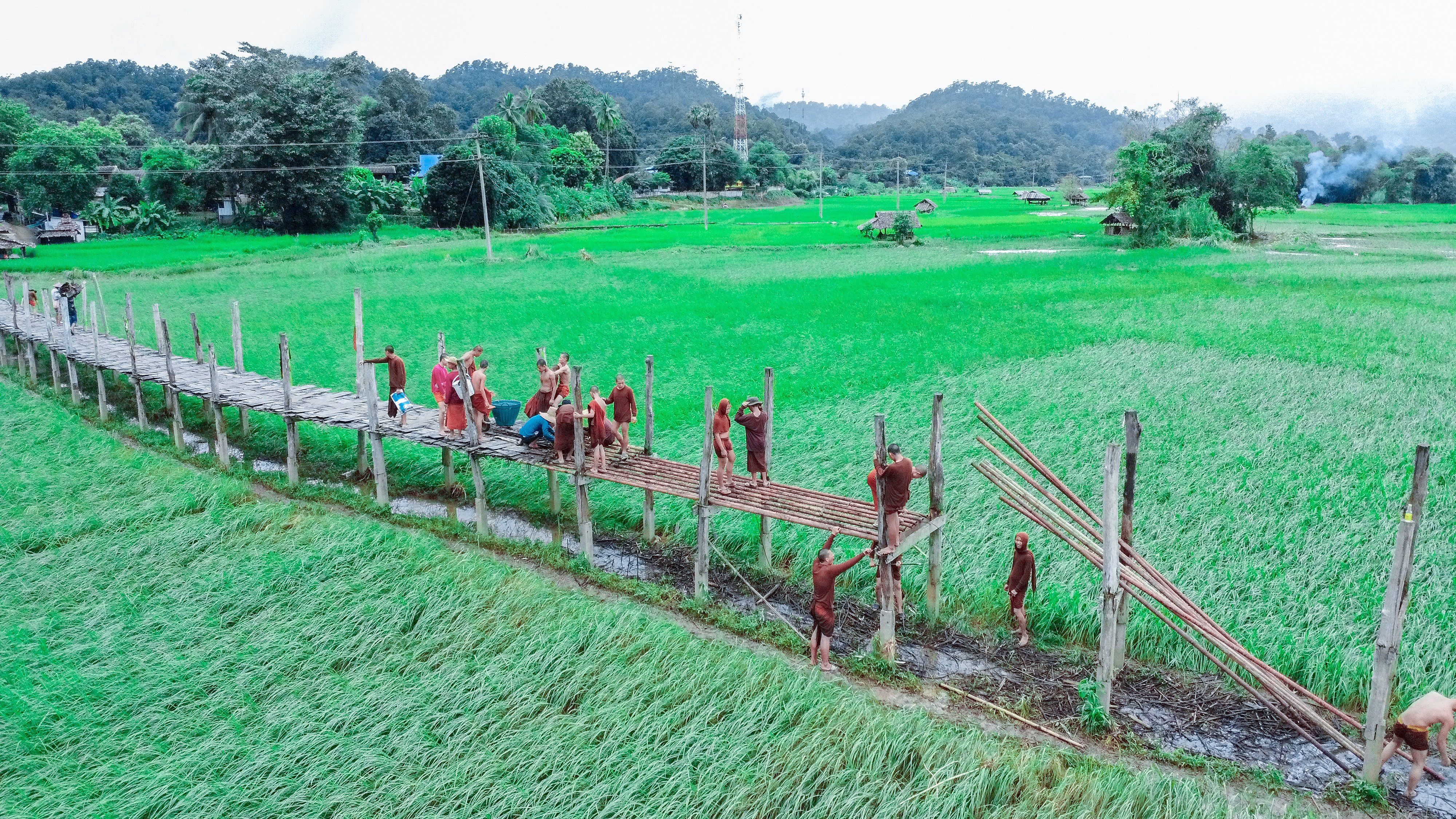 เมื่อวันที่ 15 กันยายน 2566 เวลา 09.30 น. พระปลัดจิตตพัฒน์ อัคคปัญโญ เจ้อาวาสวัดภูสมณาราม บ้านกุงไม้สัก ต.ปางหมู อ.เมือง จ.แม่ฮ่องสอน ได้จัดประชุมหารือร่วมกับหน่วยงานที่เกี่ยวข้องในพื้นที่ ทั้งส่วนราชการ ภาคเอกชน ศรัทธาประชาชนบ้านกุงไม้สัก กำนัน ผู้ใหญ่บ้าน เตรียมบูรณะซ่อมแซมสะพานไม้ซูตองเป้ ที่ประสบอุทักภัย ถูกน้ำป่าไหลหลากซัดสะพาน จนได้รับความเสียหาย ไปเมื่อวันที่ 8 กันยายน 2566 ที่ผ่านมา โดยจะคงไว้ของแนวสะพานในรูปแบบเดิม ประกอบด้วยเสาตอม่อปูน ไม้ ปูด้วยไม้ไผ่เหมือนเดิม โดยกำหนดวันรื้อสะพานและเคลียร์พื้นที่ วันที่ 18 กันยายน 2566 นี้ โดยความร่วมมือของหลายภาคส่วนทั้งทหาร ตชด. จิตอาสา ส่วนราชการ อบจ. อปท.ในพื้นที่ และศรัทธาประชาชน