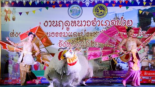 ชมรมกำนันผู้ใหญ่บ้านอำเภอปาย ร่วมกับสภาวัฒนธรรมอำเภอปาย แข่งขันรำนก รำโต สืบสานวัฒนธรรมไทใหญ่