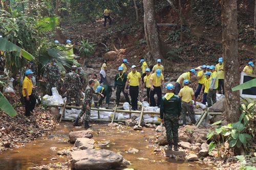 จังหวัดแม่ฮ่องสอน กิจกรรมจิตอาสาพัฒนาเนื่องในวันที่ระลึกมหาจักรีบรมราชวงศ์ นำจิตอาสาและประชาชน ได้ร่วมการพัฒนาสร้างฝายชะลอน้ำ เพื่อฟื้นฟูสภาพแวดล้อมของธรรมชาติให้สวยงามและรักษาดุลทางธรรมชาติ