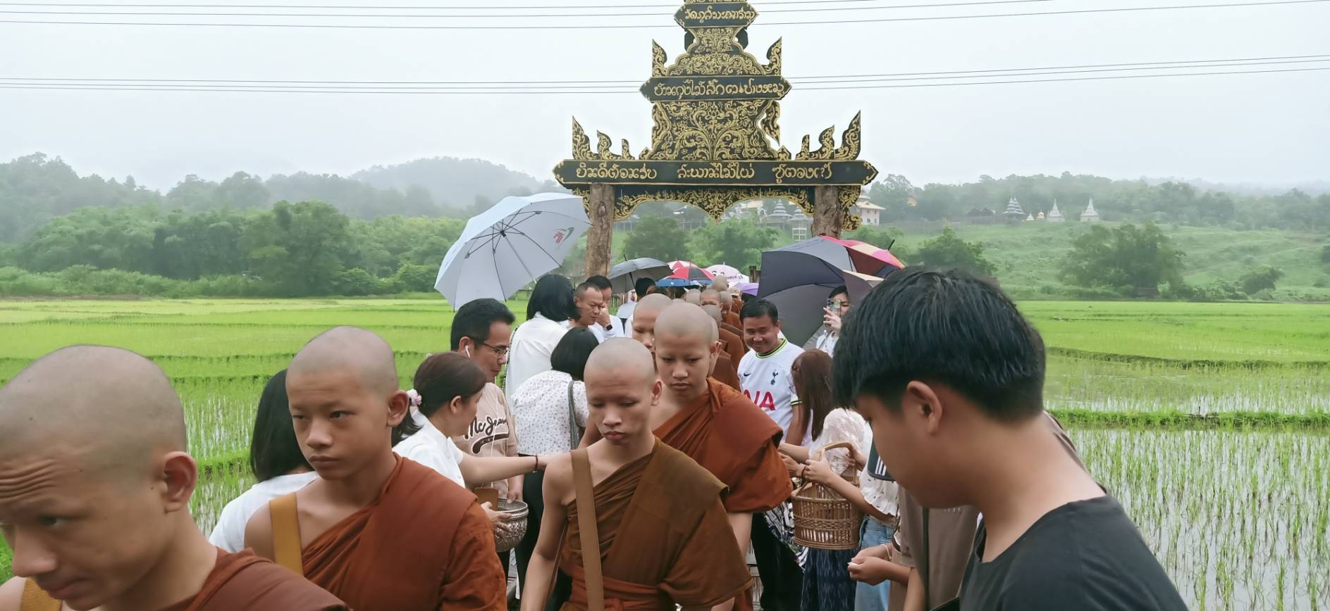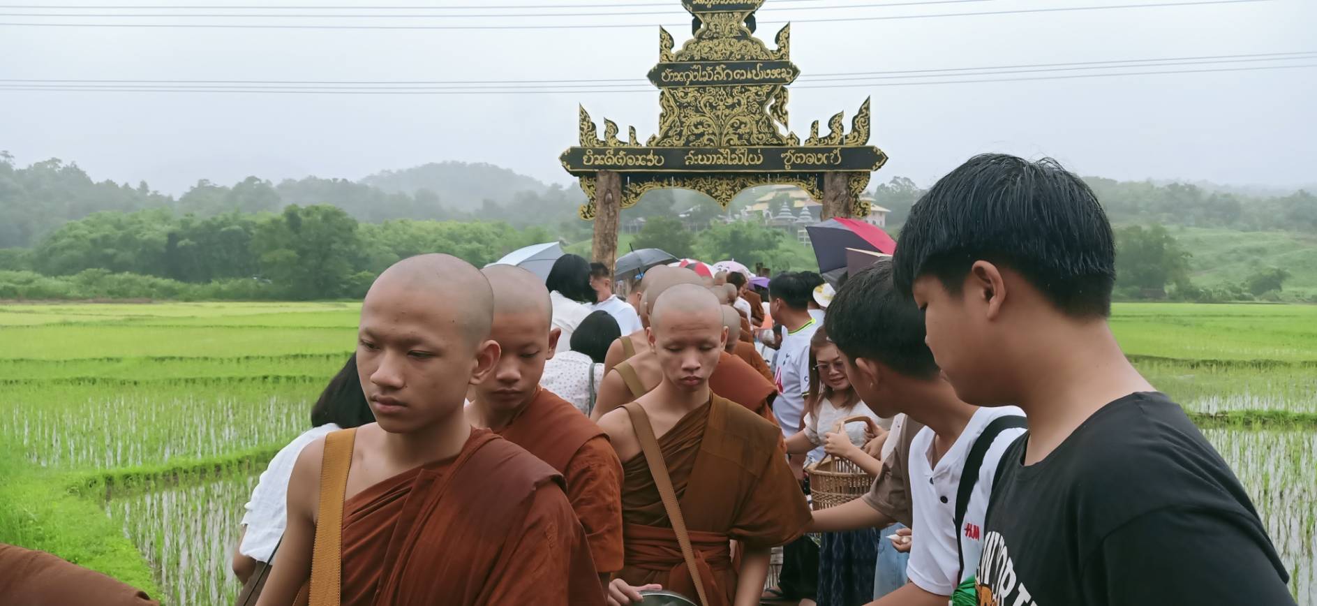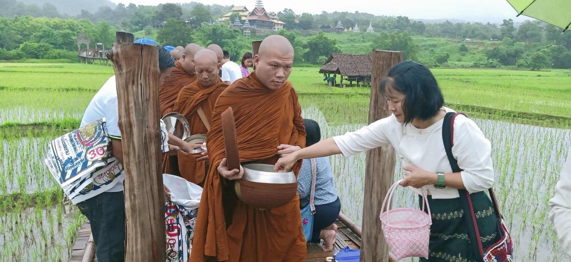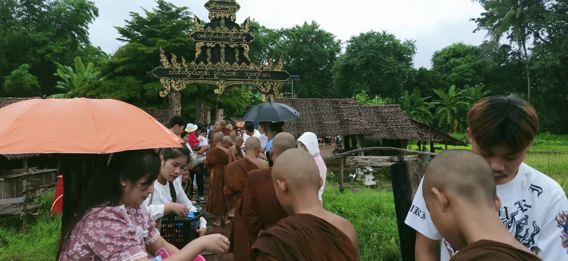 ชาวแม่ฮ่องสอนและนักท่องเที่ยว พากันร่วมทำบุญตักบาตร ที่สะพานซูตองเป้ สะพานแหล่งท่องเที่ยวชื่อดัง ในวันเข้าพรรษาท่ามกลางสายฝนที่โปรายปรายมาชุ่มฉ่ำให้แก่ทุกคน