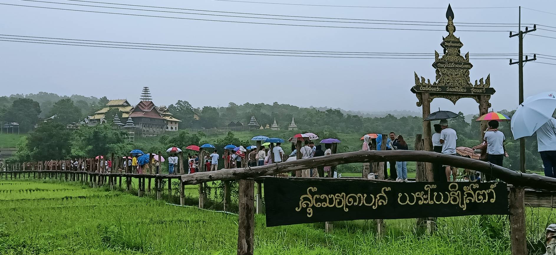เมื่อเวลา 07.30 น. วันที่ 21 กรกฎาคม 2567 พระปลัดจิตพัฒน์ อัคคปัญโญ เจ้าอาวาสวัดภูสมะณาราม บ้านกุงไม้สัก ต.ปางหมู อ.เมือง จ.แม่ฮ่องสอน จัดให้มีพิธีทำบุญตักบาตรเนื่องในวันเข้าพรรษาขึ้นที่สะพานซูตองเป้ หรือสะพานบุญอธิฐานแห่งความสำเร็จ โดยมีพุทธศาสนิกชนชาวแม่ฮ่องสอนและนักท่องเที่ยว เดินฝ่าสายฝนที่ตกลงมาโปรยปรายไปร่วมทำบุญตักบาตรข้าวสาร อาหารแห้ง พระภิกษุสงฆ์-สามเณรจำนวน 65 รูป ที่รับบิณฑบาต บนสะพานซูตองเป้ หรือสะพานบุญอธิฐานแห่งความสำเร็จ ท่ามกลางสายฝนที่ตกลงมาประปราย แต่ผู้มีจิตศรัทธาก็ไม่ย่อท้อพากันมายืนกางร่มรอ เพื่อร่วมทำบุญตักบาตรบนสะพานซูตองเป้ที่ทอดข้ามทุ่งนาตลอดความยาวของสะพานประมาณ 600 เมตร กันอย่างเนืองแน่น