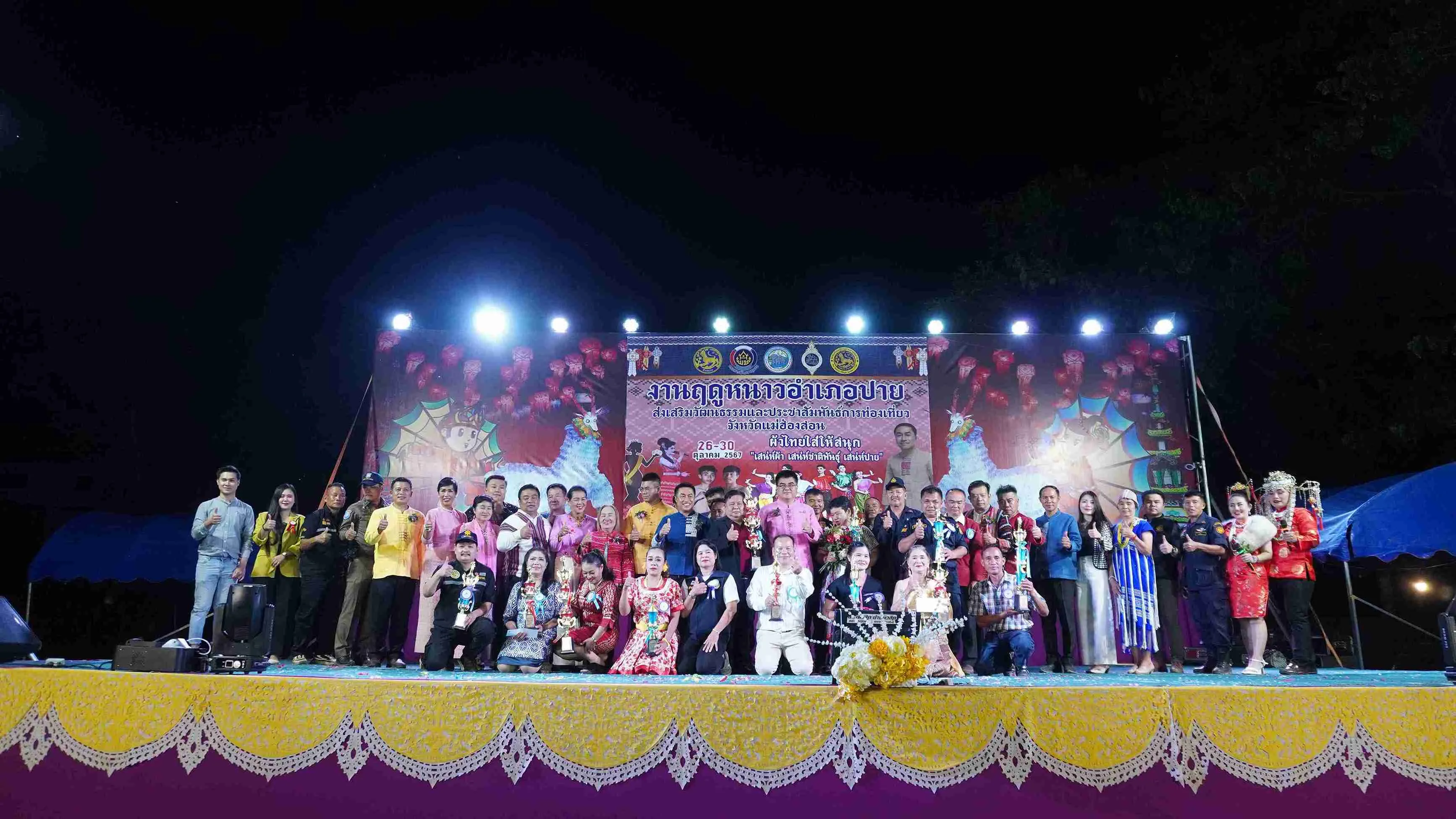 วันที่ 26 ตุลาคม 2567 การแสดงการประกวดการแข่งขันรำวงย้อนยุคของกลุ่มสตรีแต่ละตำบลในอำเภอปาย