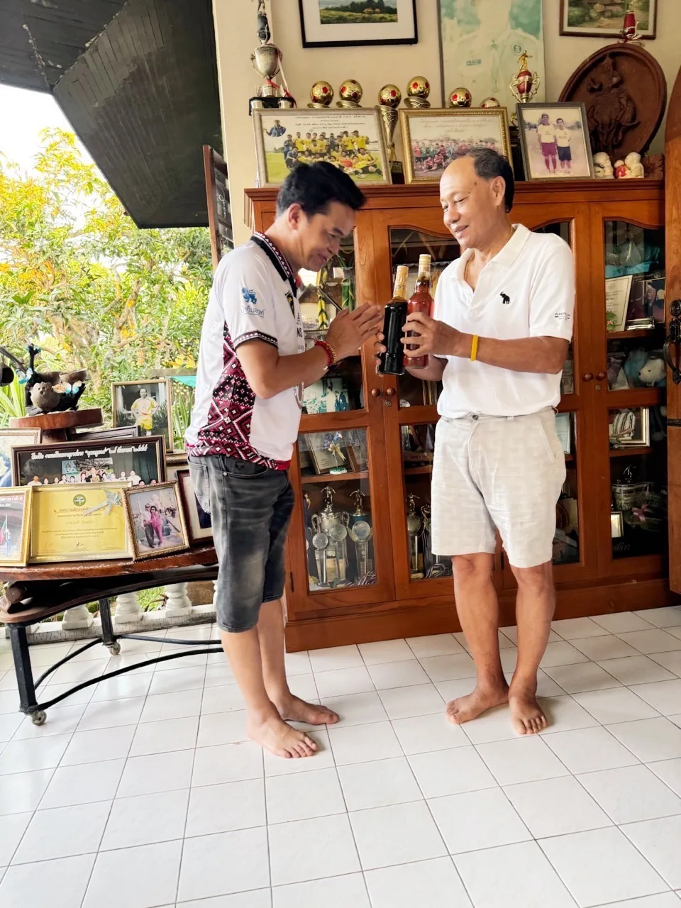 เพราะมีแนวคิดว่า ทำไมท่านถึงมีคนรักและเคารพนับถือมาโดยตลอด มีคนกล่าวถึงตลอด แต่เวลาได้มานั่งสนทนากับครูมอส ผมได้อะไรเยอะแยะครับ ในเรื่องความเป็นครูพละ ความเป็นโค้ชฟุตบอล หากท่านใดว่างๆลองไปเยี่ยมเยือนเสวนากับท่าน ท่านจะได้อะไรอีกมากครับ ท่านไม่ถือตัว ให้เกียรติน้องๆทุกคน ครับ พรที่ผมได้จากท่าน ขอให้น้องบุญชัยประสบความสำเร็จในชีวิตเกษียณ ทำในสิ่งที่ตนเองรัก ทำเพื่อสังคม สุขภาพแข็งแรงสมบูรณ์ ขอบคุณที่มาเยี่ยมเยือน และท่านมอบน้ำผึ้งระดับตำนานให้มา 2 ขวด ท่านบอกว่า ผมเก็บไว้นาน 6 เดือน สรรพคุณไม่ต้องพูดถึง น้องลองชิมดูแล้วจะรู้สึกว่ามันชื่นใจ ต้องขอขอบคุณท่านครูมอสน ที่ในปัจจุบันนี้ อ.สิริชัย จิตสว่าง วอร์ม เป็นลูกชาย ตำแหน่ง รองผอ รร. ฮ่องสอน