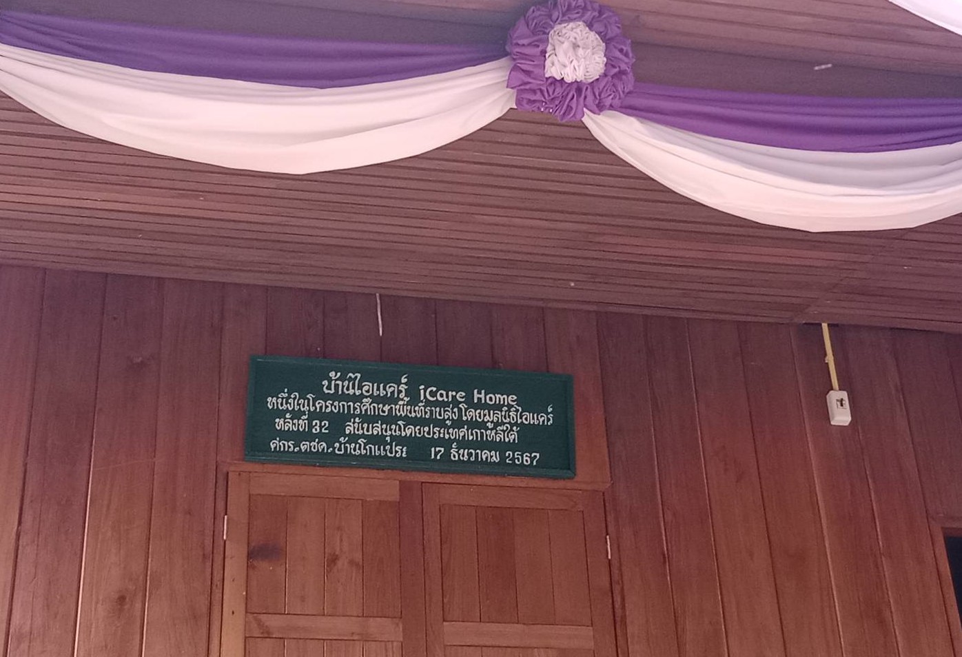 Mr.ไมเคิล แอนเดรียเซ่น ประธานมูลนิธิไอแคร์ประเทศไทย กล่าวว่ามูลนิธิฯได้จัดทำโครงการสร้างอาคารเรียนหอพักนักเรียนและบ้านพักครูสำหรับโรงเรียนในพื้นที่ห่างไกลที่ประสบปัญหาการเดินทางเพื่อมอบโอกาสและส่งเสริมโอกาสทางการศึกษา พร้อมทั้งอำนวยความสะดวกให้กับบุคลากรทางการศึกษาให้มีคุณภาพชีวิตที่ดีขึ้น โดยร่วมกับเอกอัครราชทูตสาธารณรัฐเกาหลีประจำประเทศไทย ดำเนินการก่อสร้างหอพักนักเรียนแห่งนี้ พร้อมสิ่งอำนวยความสะดวกให้แก่โรงเรียนตำรวจตระเวนชายแดนบ้านโกแประ จำนวน1 หลัง มูลค่าประมาณ 800,000 บาท ที่ผ่านมามูลนิธิฯ ได้ดำเนินการสร้างหอพักนักเรียนอาคารเรียนและบ้านพักครู รวมแล้วมากกว่า 32 หลัง และจะเสร็จสิ้นในปีนี้อีก 2 หลังรวมเป็น 34 หลัง พร้อมทั้งยังดำเนินการให้ทุนการศึกษาแก่เด็กนักเรียนในพื้นที่เป็นจำนวนมาก อย่างต่อเนื่อง ทุกปีอีกด้วย