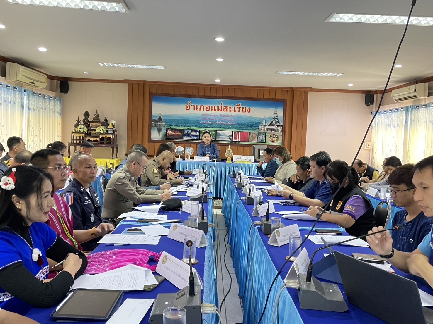 วันนี้ 20 ธันวาคม 2567 นายวรศักดิ์ พานทอง นายอำเภอแม่สะเรียง/ผู้อำนวยการศูนย์ปฏิบัติการความปลอดภัยทางถนนอำเภอแม่สะเรียง เป็นประธานการประชุมคณะกรรมการศูนย์ปฏิบัติการความปลอดภัยทางถนนอำเภอแม่สะเรียง ครั้งที่ 1/2568 และคณะกรรมการศูนย์ปฏิบัติการร่วม เทศกาลปีใหม่ พ.ศ. 2568 อำเภอแม่สะเรียง โดยมีผู้แทนจากหน่วยเฉพาะกิจกรมทหารพรานที่ 36 สถานีตำรวจภูธรแม่สะเรียง สำนักงานสาธารณสุขอำเภอแม่สะเรียง วิทยาลัยการอาชีพแม่สะเรียง สำนักงานเขตพื้นที่การศึกษาประถมศึกษาแม่ฮ่องสอนเขต 2 สำนักงานขนส่งจังหวัดแม่ฮ่องสอนสาขาแม่สะเรียง สถานีตำรวจภูธรท่าตาฝั่ง สถานีตำรวจภูธรเสาหิน ด่านตรวจคนเข้าเมืองแม่สะเรียง หมวดทางหลวงแม่สะเรียง หมวดบำรุงทางหลวงชนบทแม่สะเรียง การไฟฟ้าส่วนภูมิภาคสาขาอำเภอแม่สะเรียง สำนักงานพัฒนาชุมชนอำเภอแม่สะเรียง สำนักงานสัสดีอำเภอแม่สะเรียง สำนักงานปศุสัตว์อำเภอแม่สะเรียง สำนักงานท้องถิ่นอำเภอแม่สะเรียง สถานีวิทยุกระจายเสียงแห่งประเทศไทยอำเภอแม่สะเรียง องค์กรปกครองส่วนท้องถิ่น และกำนัน ผู้ใหญ่บ้าน เข้าร่วมประชุม ณ ห้องประชุมที่ว่าการอำเภอแม่สะเรียง ชั้น 2 อ.แม่สะเรียง จ.แม่ฮ่องสอน