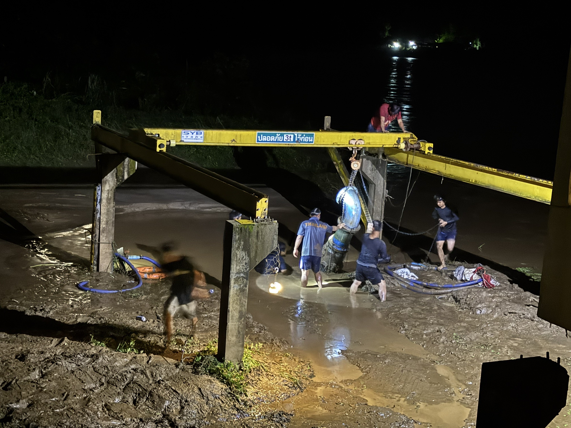 วันที่ 2 ตุลาคม 2568 นายเอกพงษ์ มานะบุตร ผู้จัดการการประปาส่วนภูมิภาค สาขาแม่สะเรียง เปิดเผยว่า จากสถานการณ์อุทกภัยที่รุนแรง เมื่อวันที่ 30 กย.68 น้ำป่าหลากไหลลงสู่น้ำยวมในครั้งนี้ ทำให้น้ำประปาไม่สามารถใช้ได้ ส่งผลชาวบ้านเดือดร้อน ไม่มีน้ำดื่ม น้ำใช้ทาง กปภ.สาขาแม่สะเรียง ไม่ได้นิ่งนอนใจได้ดำเนินการแก้ไขสถานการณ์จนสามารถเดินเครื่องสูบน้ำดิบบริเวณโรงสูบน้ำแรงต่ำบ้านท่าข้ามได้แล้ว แต่เนื่องจากน้ำที่สูบเข้ามา มีตะกอนทรายและเศษไม้เศษหญ้าปะปนอยู่เป็นจำนวนมาก ทำให้เครื่องทำงานได้ไม่นานก็เกิดการอุดตันทั้งในตัวปั้ม และท่อทางดูด /ฟุตวาล์ว ทางทีมงานพยายามแก้ไขโดยการดำน้ำเคลียร์เศษหญ้าเศษไม้บริเวณรอบฟุตวาล์ว และถอดรื้อปั๊มเพื่อนำเศษหญ้าและสิ่งที่อุดตันออกอยู่หลายครั้ง
