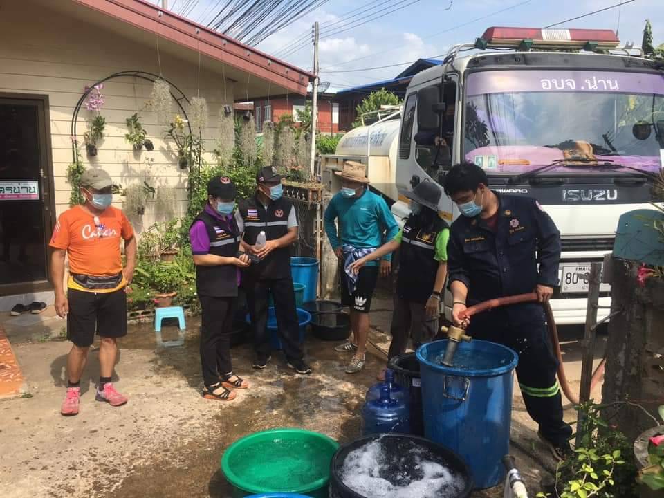 ขณะเดียวกัน นายปกฤษณ์ คำเหลือง ปลัดเทศบาลเมืองน่าน ปฏิบัติหน้าที่นายกเทศมนตรีเมืองน่าน พร้อมด้วยเจ้าหน้าที่ฝ่ายป้องกันและบรรเทาสาธารณภัยนำรถบรรทุกน้ำของเทศบาลเมืองน่าน ร่วมแจกจ่ายให้ความช่วยเหลือประชาชนที่ได้รับความเดิอดร้อนในครั้งนี้เช่นกัน