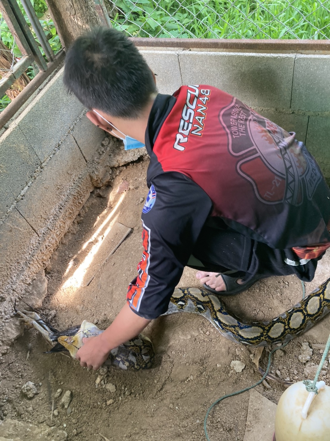 เมื่อวันที่ 24 พฤษภาคม 2564 เวลา 09.00 น. นายทศพรพันธ์ ยอดหงษ์ประธานมูลนิธิเพื่อผู้ยากไร้และศพไร้ญาติจังหวัดน่าน (องค์กรสาธารณะประโยชน์ ) ได้รับแจ้งจากชาวบ้านทึ่ขอความช่วยเหลือที่สัตว์เลื้อยคลานประเภท งู เข้าไปกินไก่ในเล้าที่บ้านสวน