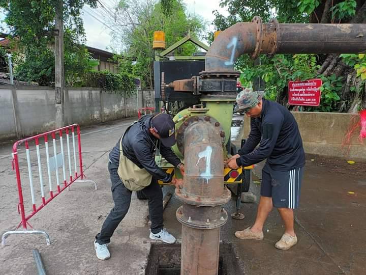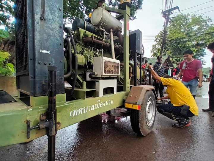 นายกเทศมนตรีเมืองน่าน พร้อมเจ้าหน้าที่ ตรวจเช็คและติดตั้งเครื่องสูบน้ำ เตรียมรับมือสถานการณ์น้ำท่วมหลังจากมีน้ำป่าไหลหลากอำเถอสายเหนือ