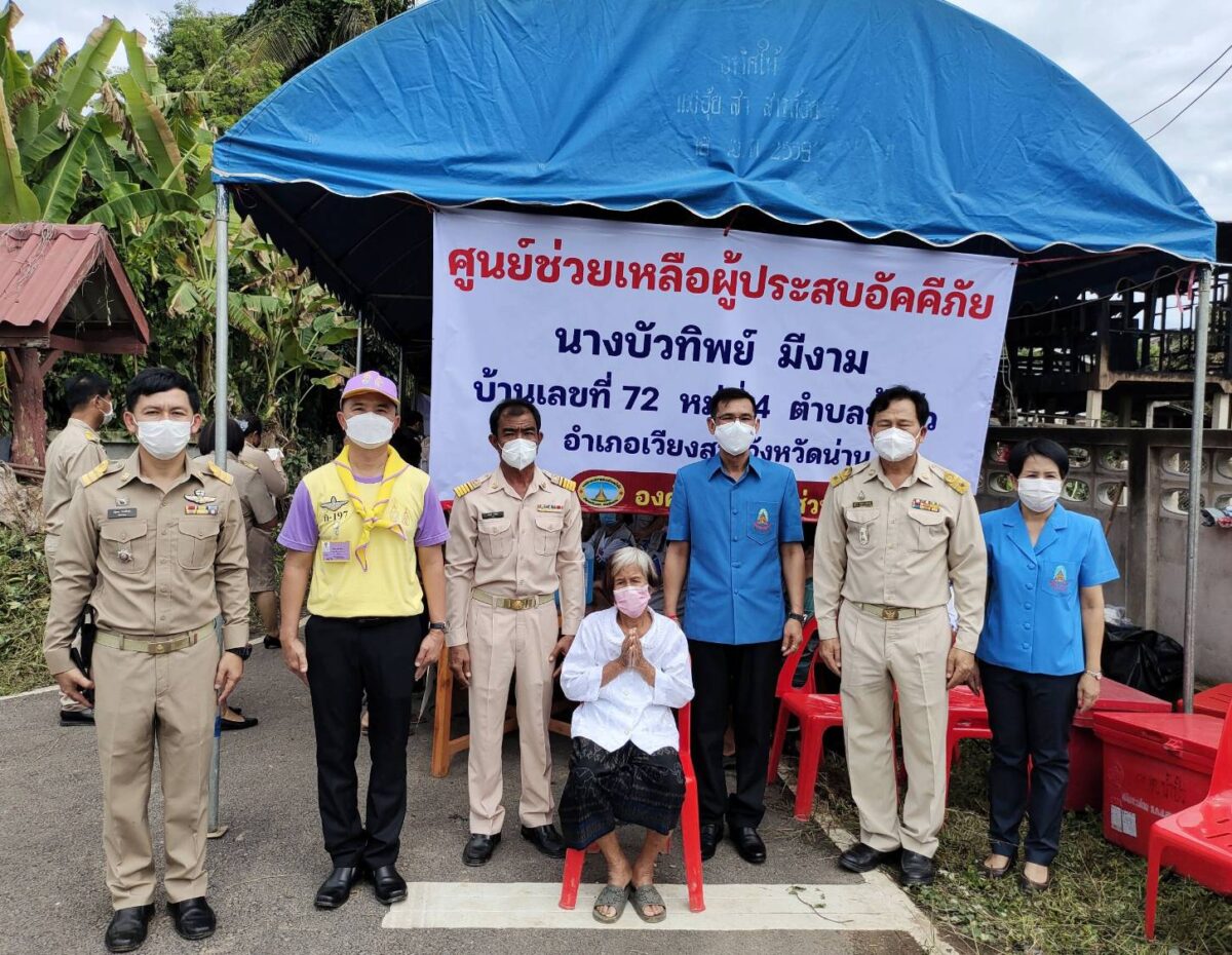 วันที่ 15 กรกฎาคม 2565 เวลา 10.00 น. นายวิบูรณ์ แววบัณฑิต ผู้ว่าราชการจังหวัดน่าน ประธานมูลนิธิราชประชานุเคราะห์ ในพระบรมราชูปถัมภ์ ประจำจังหวัดน่าน เป็นประธานในพิธีมอบสิ่งของ และเงินสำรองจ่ายมูลนิธิราชประชานุเคราะห์ ในพระบรมราชูปถัมภ์ จำนวน 49,500 บาท ช่วยเหลือผู้ประสบอัคคีภัย นางบัวทิพย์ มีงาม อายุ 82 ปี บ้านหมู่ 4 ตำบลน้ำปัว อำเภอเวียงสา จังหวัดน่าน ที่อยู่ด้วยกัน 2 คน กับลูกชายชื่อนายยุทธนา มีงาม อายุ 49 ปี