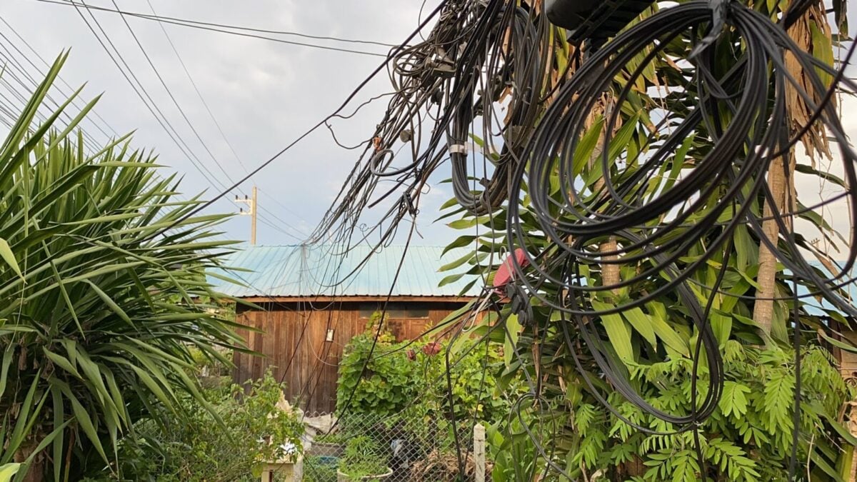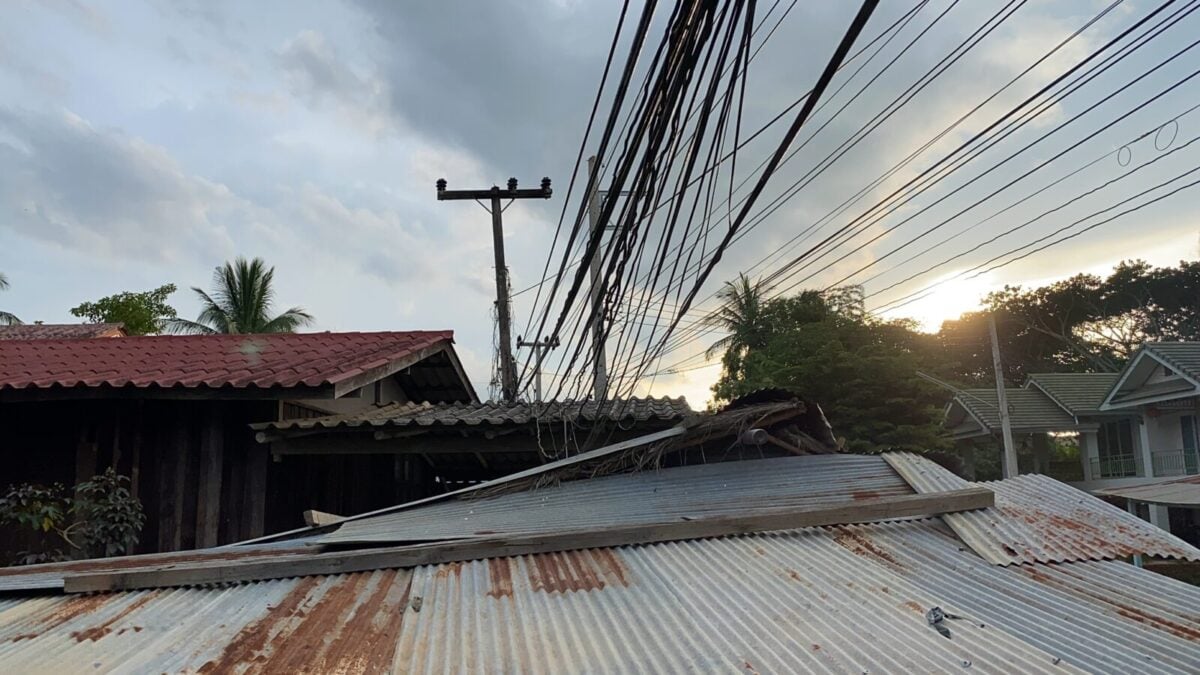 ชาวบ้านนอนผวาร้องเรียน สายสื่อสารสายเคเบิ้ลหย่อนขาด ห้อยระโยงระยางต่ำเตี้ย พาดผ่านหลังคาบ้าน แจ้งหน่วยงานหลายครั้งไม่มาแก้ไข หวั่นเกิดอันตรายถึงชีวิต