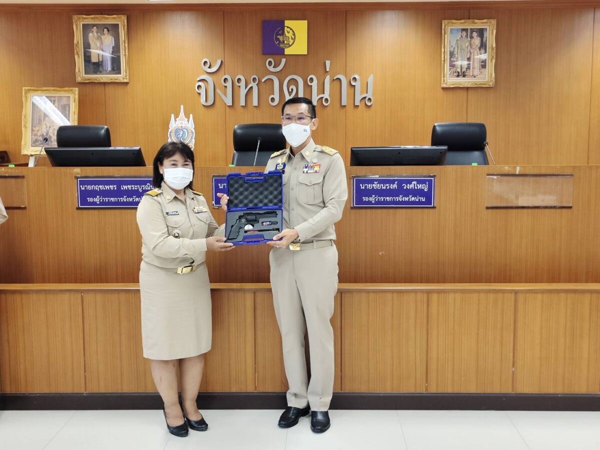พร้อมกันนี้ ได้ มอบรางวัลให้แก่กำนัน ผู้ใหญ่บ้าน ยอดเยี่ยม ประจำปี 2564 เพื่อเป็นขวัญกำลังใจในการปฏิบัติงานให้แก่กำนัน ผู้ใหญ่บ้าน ที่มีผลการปฏิบัติหน้าที่ ดีเด่นในรอบปีงบประมาณที่ผ่านมา ซึ่งจังหวัดน่าน ได้ดำเนินการพิจารณาคัดเลือกกำนัน ผู้ใหญ่บ้าน เข้ารับรางวัลประจำปี 2564 และกรมการปกครองกระทรวงมหาดไทย ได้จัดส่งรางวัลอาวุธปีนสั้น เพื่อมอบให้กำนัน ผู้ใหญ่บ้านยอดเยี่ยม เพื่อเป็นขวัญกำลังใจให้แก่กำนัน ผู้ใหญ่บ้าน ที่ได้รับรางวัล