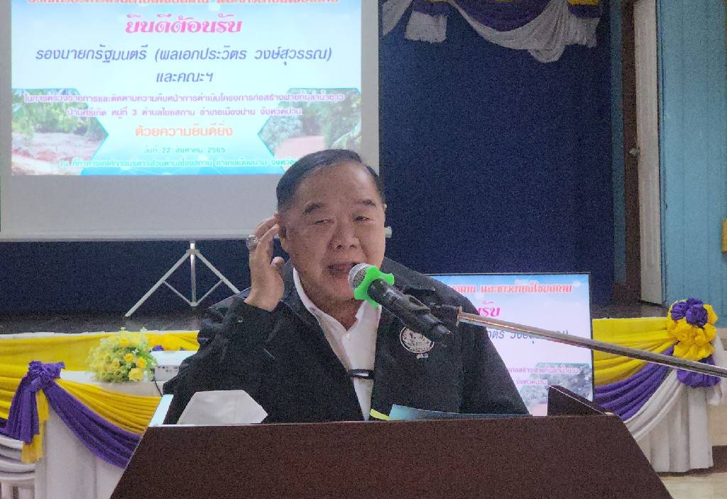 เมื่อวันที่ 22 สิงหาคม 2565 ประวิตร วงษ์สุวรรณ รองนายกรัฐมนตรี ในฐานะประธานคณะกรรมการทรัพยากรน้ำแห่งชาติ (กนช.) และผู้อำนวยการกองอำนวยการน้ำแห่งชาติ (กอนช.) พร้อมคณะ เดินทางไปตรวจราชการพื้นที่จังหวัดน่าน ประชุมรับฟังบรรยายสรุปความเสียหายของพื้นที่จังหวัดน่านที่ได้รับผลกระทบจากพายุดีเปรสชั่น ”มู่หลาน” และติดตามความก้าวหน้าของนโยบายรัฐบาล ประกอบด้วย ข้อมูลและสถานการณ์น้ำจังหวัดน่าน การแก้ไขปัญหาน้ำหลากจังหวัดน่าน สรุปความเสียหายของพื้นที่การขอรับการจัดสรรงบประมาณในการแก้ไขปัญหาในภาพรวม ณ ที่ห้องประชุมเจ้าสุริยพงษ์ผริตเดช ศาลากลางจังหวัดน่าน มีนายวิบูรณ์ แววบัณฑิต ผู้ว่าราชการจังหวัดน่าน กล่าวต้อนรับและสรุปภาพรวมสถานการณ์น้ำในพื้นที่ ซึ่งจังหวัดน่านได้รับผลกระทบจากพายุมู่หลานระหว่างวันที่ 11 ถึง 15 สิงหาคม 2565 เกิดความเสียหายจำนวน 13 อำเภอ 61 ตำบล และ 368 หมู่บ้าน โดยทางจังหวัดใช้เงินทดรองราชการเพื่อช่วยเหลือไปแล้ว อำเภอละ 300,000 บาทรวมเป็นเงินกว่า 5 ล้าน 5 แสนบาทคงเหลือในอำนาจของผู้ว่าอีกประมาณ 10 ล้านบาท ที่ผ่านมามูลนิธิราชประชานุเคราะห์ในพระบรมราชูปถัมภ์ และมูลนิธิอาสาเพื่อนพึ่ง (ภา) ยามยาก สภากาชาดไทย ได้มอบสิ่งของพระราชทานช่วยเหลือประชาชน ผู้ประสบภัยไปแล้ว 2 ครั้งในการนี้จังหวัดได้เสนอขอขยายวงเงินทดรองราชการไปยังกรมบัญชีกลาง กระทรวงการคลัง เพิ่มเติมขณะที่สิ่งสาธารณูปโภคที่เสียหายที่จำเป็นต้องได้รับการซ่อมแซมก่อสร้างใหม่