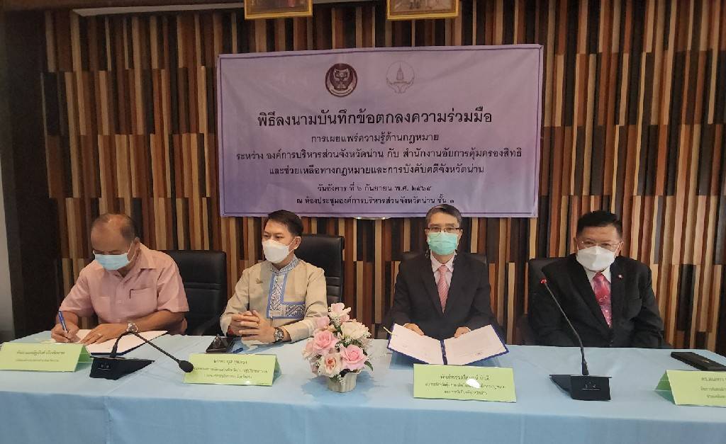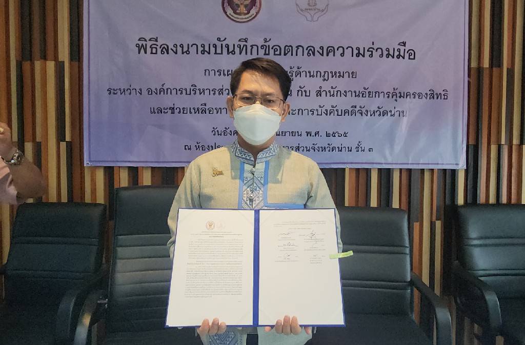 องค์การบริหารส่วนจังหวัดน่านลงนามความร่วมมือกับ สำนักงานอัยการคุ้มครองสิทธิและช่วยเหลือทางกฎหมายและการบังคับคดีจังหวัดน่าน เพื่อการเผยแพร่ความรู้ด้านกฎหมาย