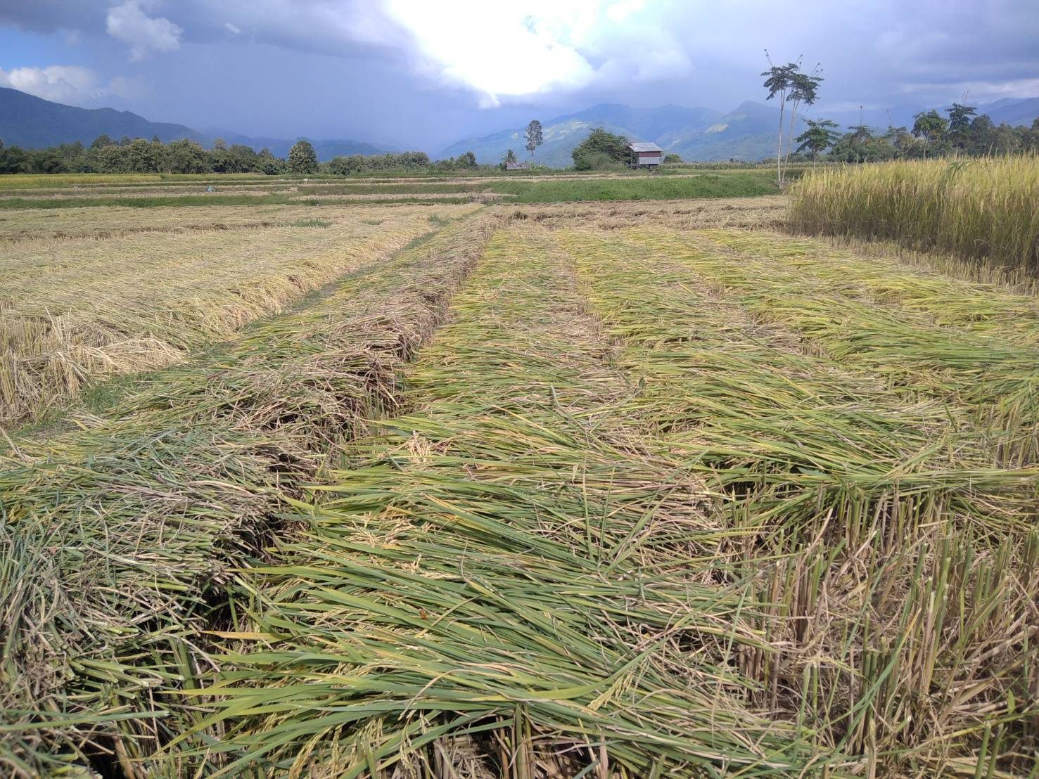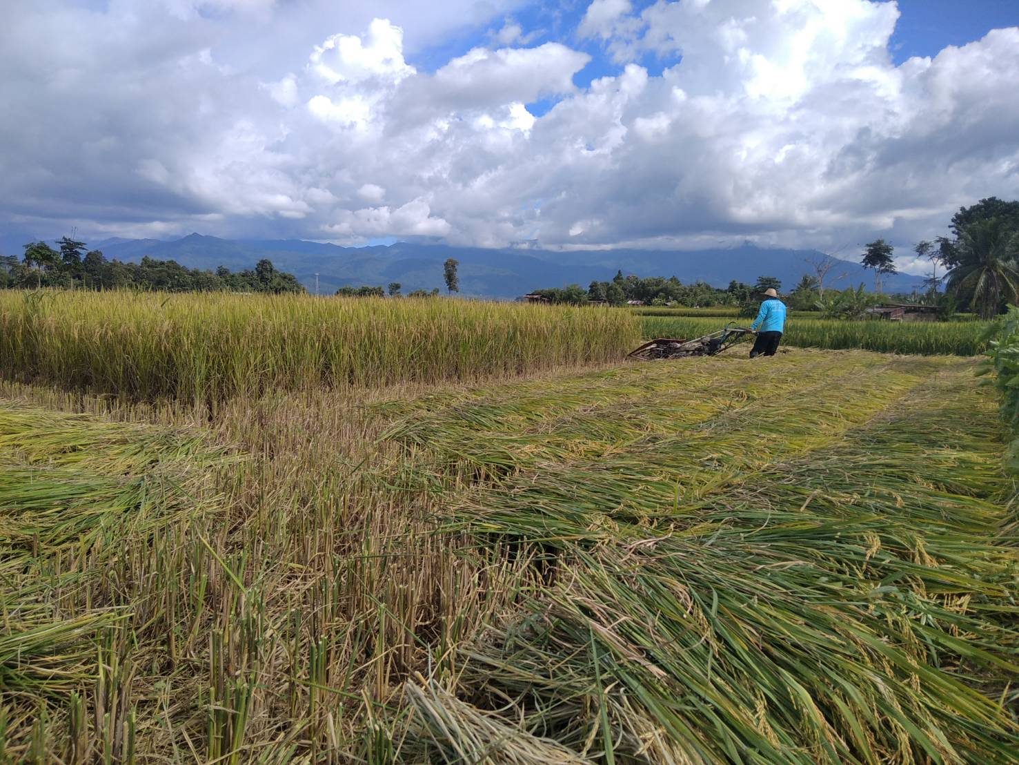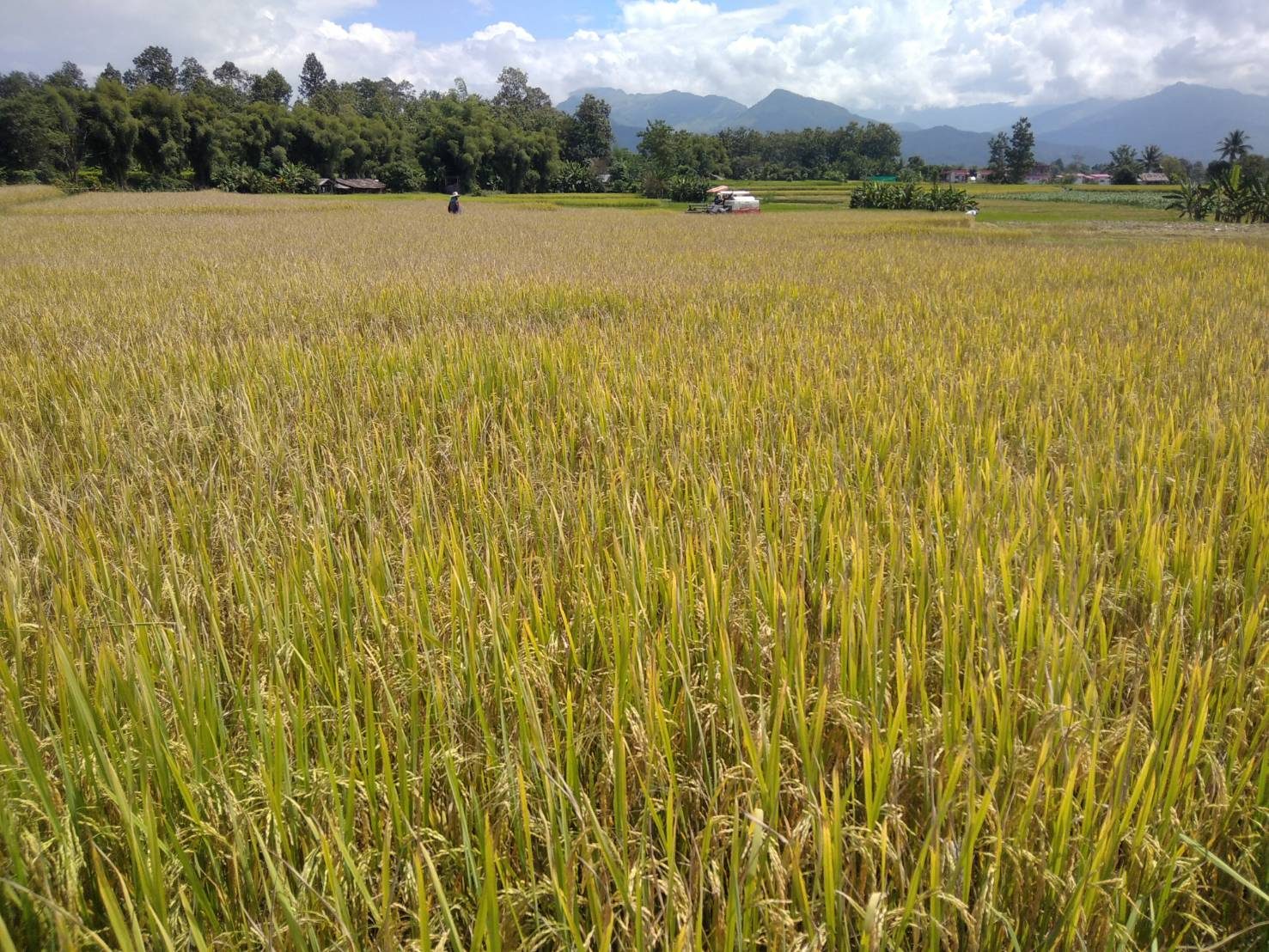 ที่แปลงนาของชาวบ้านท่าควาย หมู่ที่ 3 ตำบลไชยวัฒนา อำเภอปัว จังหวัดน่าน นายไชยยศ สุไชยยะ พร้อมด้วย นางจันทร์แรม สุไชยยะ สองสามีภรรยา นำรถเกี่ยวข้าวแบบเดินตาม ออกรับจ้างชาวบ้านเกี่ยวข้าว ในพื้นที่ ตำบลไชยวัฒนา โดยแต่ละวันสองสามีภรรยา จะออกรับจ้างเกี่ยวข้าว เพื่อเสริมรายได้ให้กับครอบครัว ในช่วงฤดูกาลเกี่ยวข้าวของทุกปี หลังจากตนเองมีที่นาไม่กี่ไร่ ได้เร่งช่วยกันเกี่ยวข้าวของตนเอง ให้เสร็จ จากนั้นก็จะตระเวนออกไปรับจ้างเกี่ยวข้าว ให้กับผู้ที่มาติดต่อไว้ ในอัตราในราคาคงเดิม โดยคิดไร่ละ 500 บาท เนื่องจากเห็นใจชาวนาด้วยกัน ถึงแม้ราคาน้ำมันจะแพง ก็คงคิดราคาเดิม ไร่ละ 500 บาท ซึ่งมีผู้มาติดต่อล่วงหน้าแล้วกว่า 10 ราย ซึ่งชาวนาสู้ค่าแรงงานคนไม่ไหว ที่มีค่าแรงที่สูงขึ้น วันละ 300-450 บาท ต่อคนต่อวัน จึงต้องหันมาจ้างรถเกี่ยวแทนแรงงานคน เพื่อลดต้นทุน
