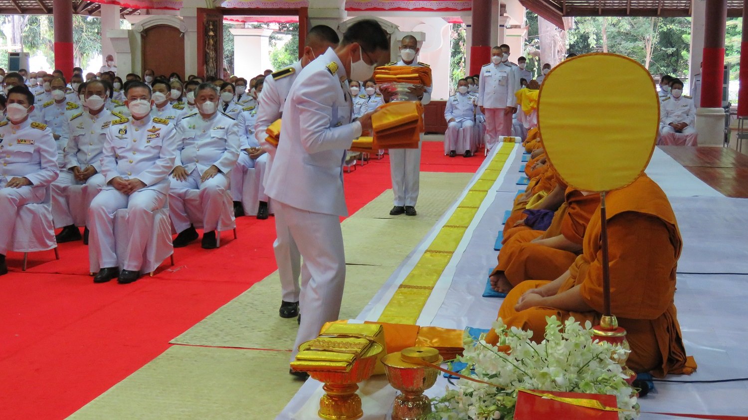 โดยมี นายวิบูลย์ ลแววบัณฑิต ผู้ว่าราชการจังหวัดน่าน ประธานในพิธีได้จุดธูปเทียนบูชาพระรัตนไตร ได้จุดเครื่องทองน้อยหน้าพระบรมฉายาลักษณ์ พระบาทสมเด็จพระปรมินทรมหาภูมิพลอดุลยเดช บรมนาถบพิตร พระสงฆ์ให้ศีล สวดเจริญพระพุทธมนต์ ประธานทอดผ้าไตรจำนวน 10 ไตร พระสงฆ์พิจารณาผ้าไตรบังสุกุล พระสงฆ์อนุโมทนา ประธานกราบลาพระรัตนไตร และถวายความเคารพพระบรมฉายาลักษณ์ พระบาทสมเด็จพระปรมินทรมหาภูมิพลอดุลยเดช บรมนาถบพิตร เป็นอันเสร็จพิธี จากนั้นผู้ว่าราชการจังหวัดน่าน พร้อมด้วยนายกเหล่ากาชาดจังหวัดน่าน ข้าราชการ ทหาร ตำรวจ และประชาชนชาวจังหวัดน่าน ร่วมกันทำบุญตักบาตรพระสงฆ์ 89 รูป และค่ำวันนี้ จะมีพิธีถวายบังคม เบื้องหน้าพระบรมฉายาลักษณ์ พระบาทสมเด็จพระบรมชนกาธิเบศร มหาภูมิพลอดุลยเดชมหาราช บรมนาถบพิตร เนื่องในวันคล้ายวันสวรรคต พระบาทสมเด็จพระบรมชนกาธิเบศร มหาภูมิพลอดุลยเดชมหาราช บรมนาถบพิตร และร่วมการถวายความเคารพพร้อมกัน