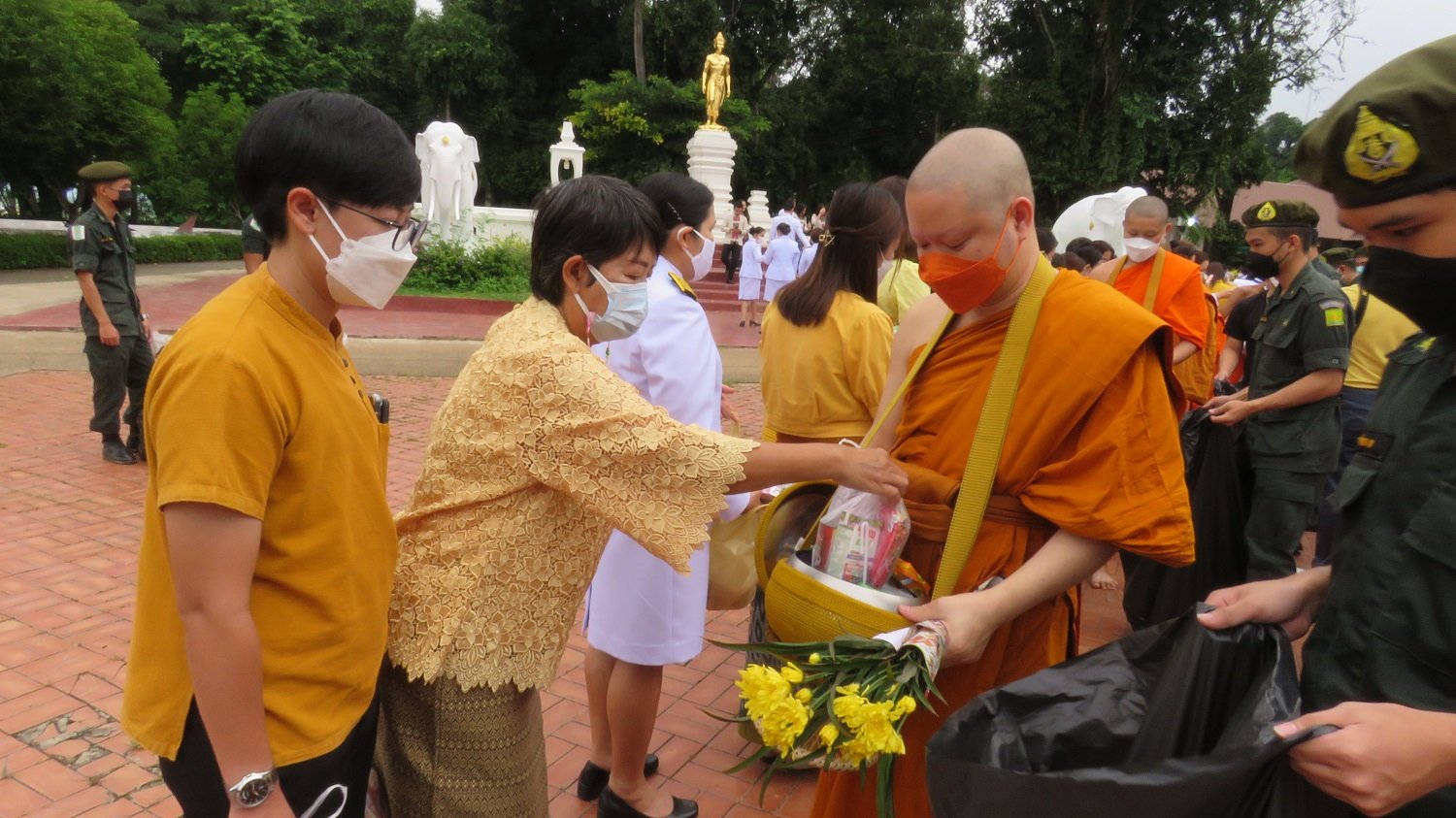 พสกนิกรชาวน่าน ร่วมพิธีบำเพ็ญกุศลทำบุญตักบาตรเนื่องในวันคล้ายวันสวรรคต พระบาทสมเด็จพระบรมชนกาธิเบศร มหาภูมิพลอดุลยเดชมหาราชบรมนาถบพิตร