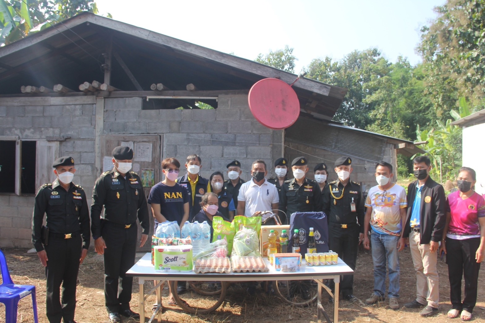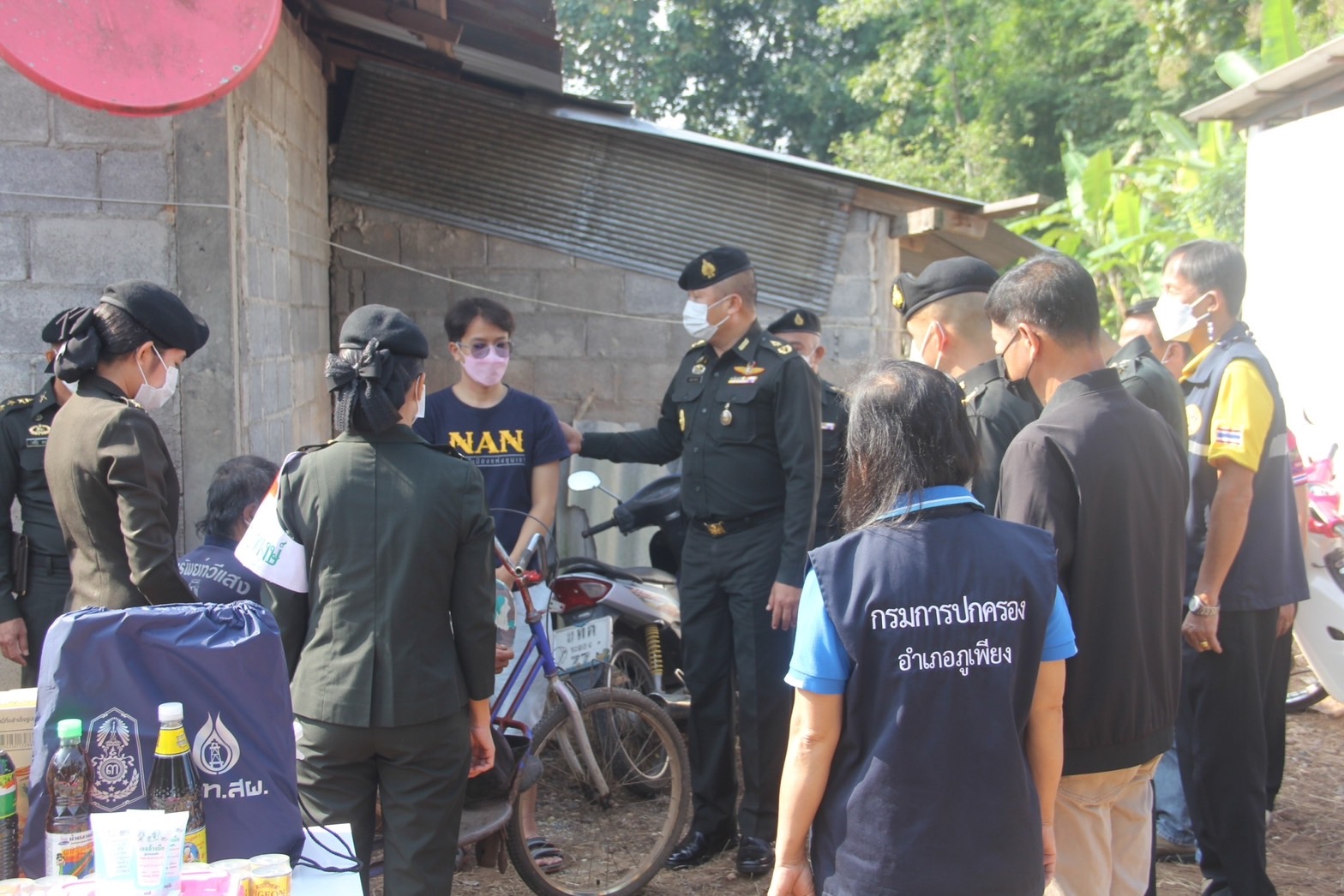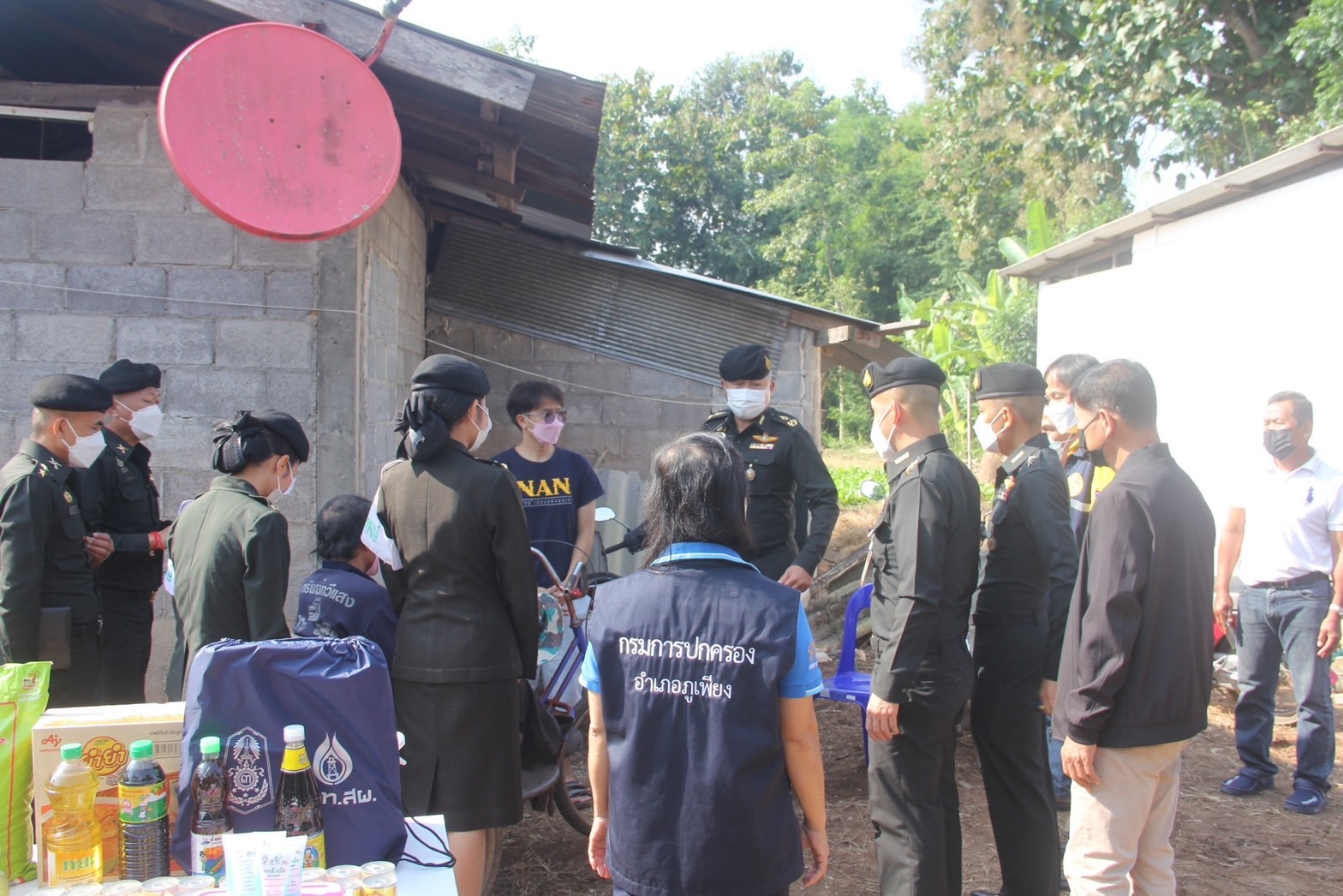 เมื่อวันที่ 30 ตุลาคม 2565 พล.ต.คณิศร อาสมะ ผบ.มทบ.38 พร้อมคณะ นำชุดแพทย์ รพ.ค่ายสุริยพงษ์ ร่วมกับ กำนัน ,ผู้ใหญ่บ้าน และ อสม.ลงพื้นที่มอบสิ่งของอุปโภคบริโภค ,ชุดยาเวชภัณฑ์สามัญตรวจร่างกายพื้นฐานและมอบไม้ค้ำยัน ให้ 1.ครอบครัวของ นาย ศุภฤกษ์ กันทันกาลัง สังกัด มทบ.38 ณ บ้านหมู่ 1 บ้านกอก ต.ท่าน้าว อ.ภูเพียง จ.น่าน ปัจจุบันอาศัยอยู่กับลุงคือนายสุบิน กันทะกาลัง ซึ่งพิการทางการเคลื่อนไหว