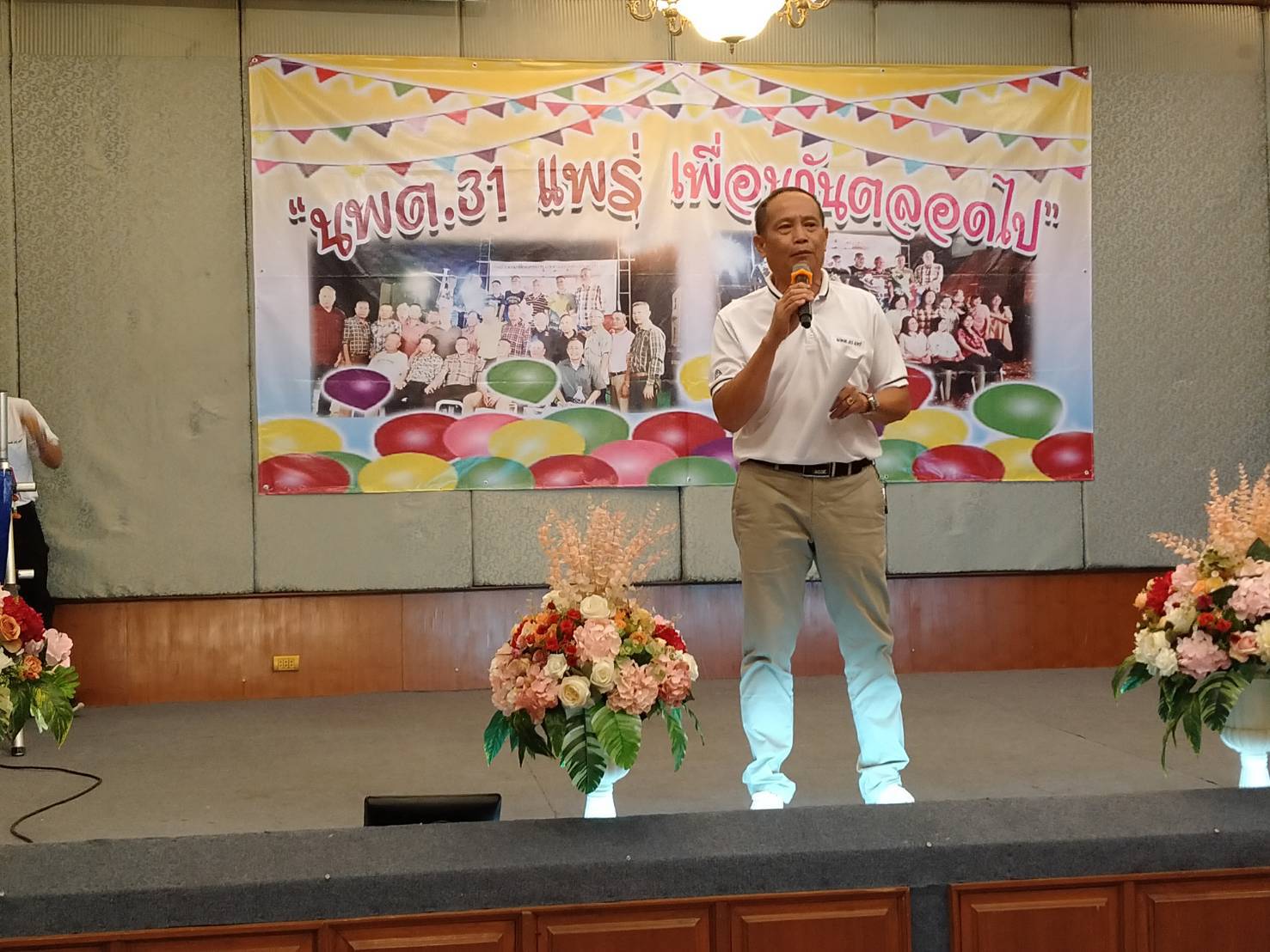 9) จึงได้งดจัดงานเลื่อนมาถึงปีนี้ ต่อจากนี้เป็นต้นไปทุกคนได้เดินทางมาสู่จุดหมายของชีวิตทางราชการแล้ว แต่ยังต้องเดินต่อไปจนชีวิตจะหาไม่ดังนั้น ในนาม นพต.31 แพร่เราจะไม่ทิ้งกันจช่วยเหลือดูแลกันตลอดไป เมื่อมีเวลาและโอกาสที่เหมาะสมเราจะมาพบปะสังสรรค์กันอีกประธาน รุ่น นพต.31 ลำปาง (แพร่) กล่าว