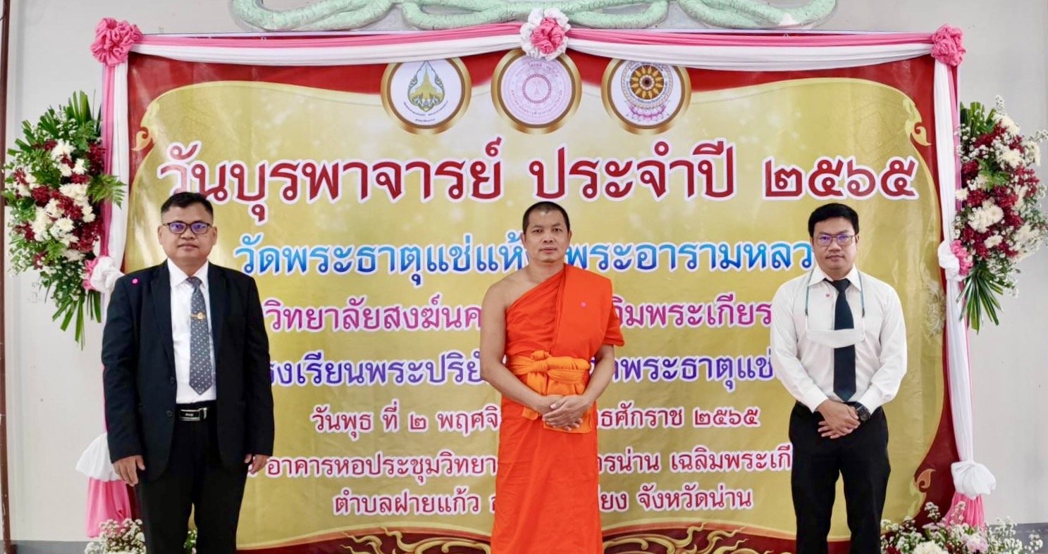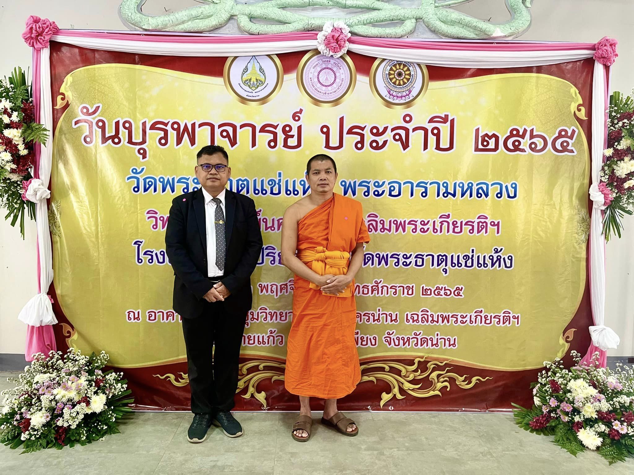 เมื่อวันที่ 2 พฤศจิกายน 2565 พระครูสิริบรมธาตุพิทักษ์ ,ผศ.ดร. รองอธิการบดีมหาวิทยาลัยมหาจุฬาลงกรณราชวิทยาลัย วิทยาเขตเชียงใหม่ พระครูโกวิทอรรถถวาที ,ผศ.ดร. รองผู้อำนวยการฝ่ายวิชาการ วิทยาลัยสงฆ์ลำพูน พร้อมคณะ เข้าสักการะพระชยานันทมุนี ,รศ.ดร. (ธรรมวัตร จรณธมฺโม สกุล ณ น่าน) เจ้าอาวาสวัดพระธาตุแช่แห้ง พระอารามหลวง/ รองเจ้าคณะจังหวัดน่าน/ ผู้อำนวยการ วิทยาลัยสงฆ์น่าน เฉลิมพระ เกียรติ ในโอกาสทำบุญวันบุรพาจารย์ ทำบุญอายุวัฒนมงคล 53 ปี 33 พรรษา และมุทิตาสักการะที่ได้รับแต่งตั้งเป็นรองเจ้าคณะจังหวัดน่าน และดำรงตำแหน่งทางวิชาการ “รองศาสตราจารย์” สาขาวิชาพระพุทธศาสนาและเทววิทยา ณ หอประชุมวิทยาลัยสงฆ์นครน่าน เฉลิมพระเกียรติ อำเภอภูเพียง จังหวัดน่าน