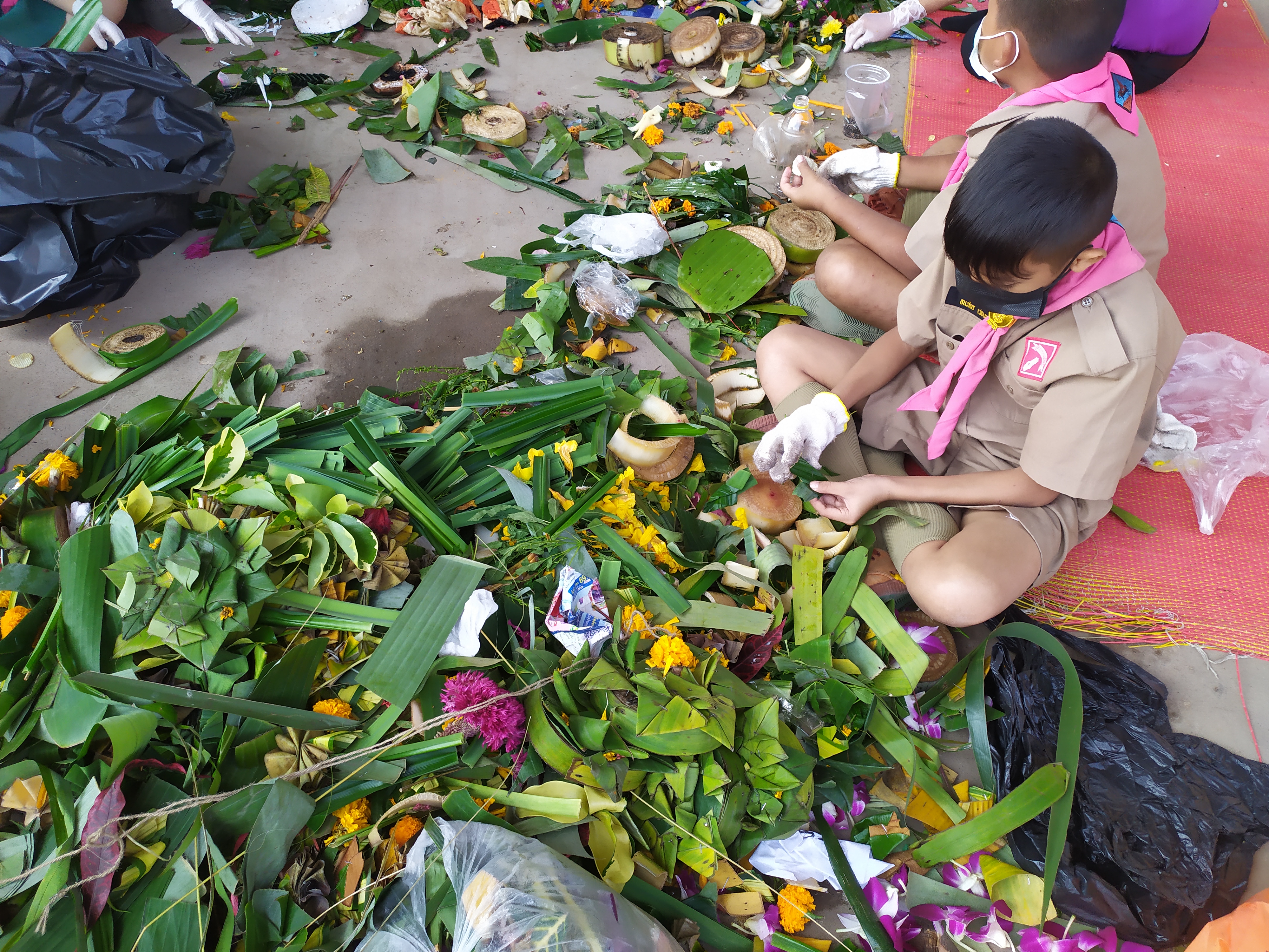 น่าน เยาวชน ร่วมกันเก็บและคัดแยกกระทง ถอดแม็ก ตะปู ออก ก่อนนำกระทงไปเข้าสู่กระบวนการเพื่อนำไปผลิตเป็นกระดาษจากใยกล้วย เพื่อนำไปต่อยอดทำเป็นกล่องกระดาษใยกล้วย หรือผลิตภัณฑ์รักษ์โลกอื่นๆ