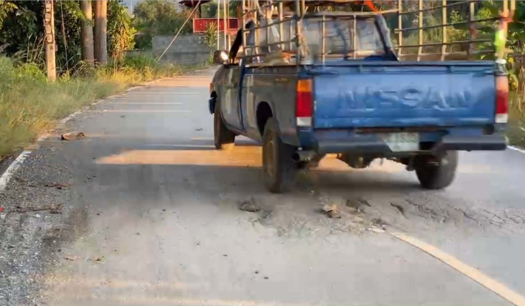 โดยถนนดังกล่าวเป็นถนนลาดยางเลียบคันลำน้ำขว้าง มีความยาวประมาณ 1.5 กิโลเมตร กว้าง 6 เมตร มีสภาพแตกลายอยู่หลายจุด บางจุดเป็นหลุมเป็นบ่อ โดยสังเกตโดยรอบไม่พบป้ายเตือนหรือป้ายห้ามรถบรรทุกใช้ถนน