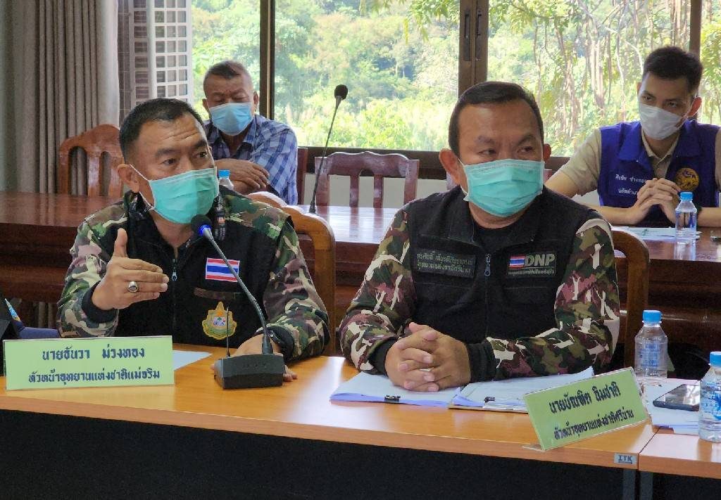 โดยมี นายกฤชเพชร เพชระบูรณิน รองผู้ว่าราชการจังหวัดน่าน พร้อมด้วย นายนพพร เรืองสุวรรณ นายอำเภอเวียงสา นายสุนทร มหาวงศนันท์ อดีตนายอำเภอเวียงสา นายสกล เนตรใสวรกุล นายกสมาคมกำนันผู้ใหญ่บ้านจังหวัดน่าน /ประธานชมรมกำนันผู้ใหญ่บ้านอำเภอเวียสา พร้อมด้วย นายเกษตร ปะทิ สาธารณสุขอำเภอเวียงสา , นายธันวา ม่วงทอง หน.อุทยานแห่งชาติแม่จริม , นายอำพล เวียงทอง ทรัพยากรธรรมชาติและสิ่งแวดล้อมจังหวัดน่าน , นายสุรศักดิ์ เกียรติภัทราภรณ์ ผช.หัวหน้าอุทยานแห่งชาติศรีน่าน , นายเนียร นันตา นายก อบต.น้ำมวบ , นายปรีชา สมบัติแก้ว กำนันตำบลอ่ายนาลัย , นายสมัคร วังมงคล กำนันตำบลส้านนาหนองใหม่ , นายชาญนรินทร์ ลาพิยะ นายก อบต.แม่ขะนิง , นายสมหวังใจหมั่น นายก อบต.อ่ายนาลัย ผู้นำท้องที่ ท้องถิ่น อำเภอเวียงสา , ร.ต.อ.จักรพงศ์ อินต๊ะนิน รอง ผบ.ร้อย ตชด.324 พี่น้องประชน อสม.ตำบลน้ำมวบ , ตำบลนาส้านนาหนองใหม่ และหน่วยงานที่เกี่ยวข้อง ร่วมให้ข้อมูล ข้อเท็จจริงและรายงานผลการดำเนินงาน ที่หอประชุมองค์การบริหารส่วนตำบลน้ำมวบ อำเภอเวียงสา