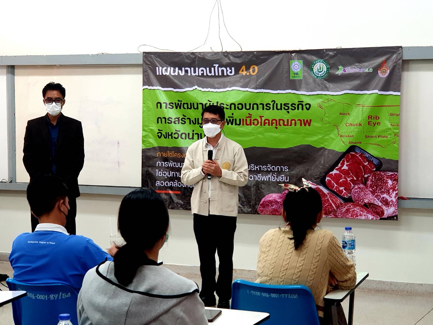 คณะวิทยาศาสตร์และเทคโนโลยีการเกษตร มทร.ล้านนา น่าน ร่วมกับ ม.แม่โจ้ จัดการฝึกอบรมเชิงปฏิบัติการ “การพัฒนาผู้ประกอบการ ในธุรกิจการสร้างมูลค่าเพิ่ม เนื้อโคขุนคุณภาพ จ.น่าน”