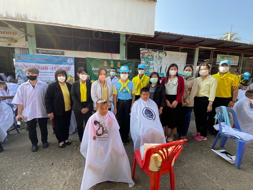 ศอ.จอส.พระราชทาน มทบ.38 จัดชุด Army Barber Delivery ร่วมกับวิทยาลัยสารพัดช่างน่าน ออกให้บริการตัดผมฟรีแก่นักเรียนในเขต อ.เมืองน่าน