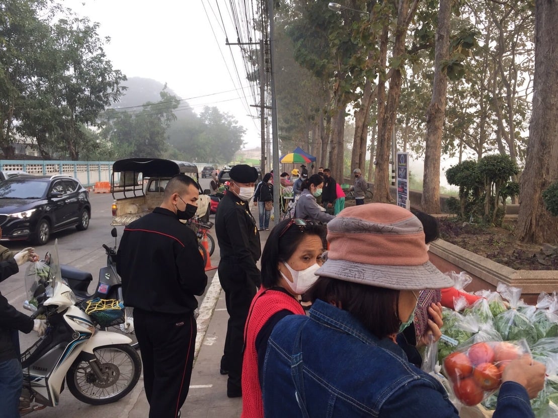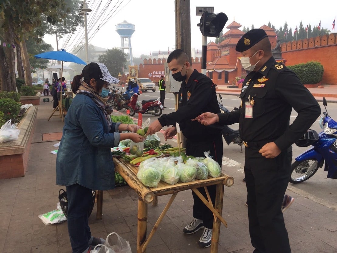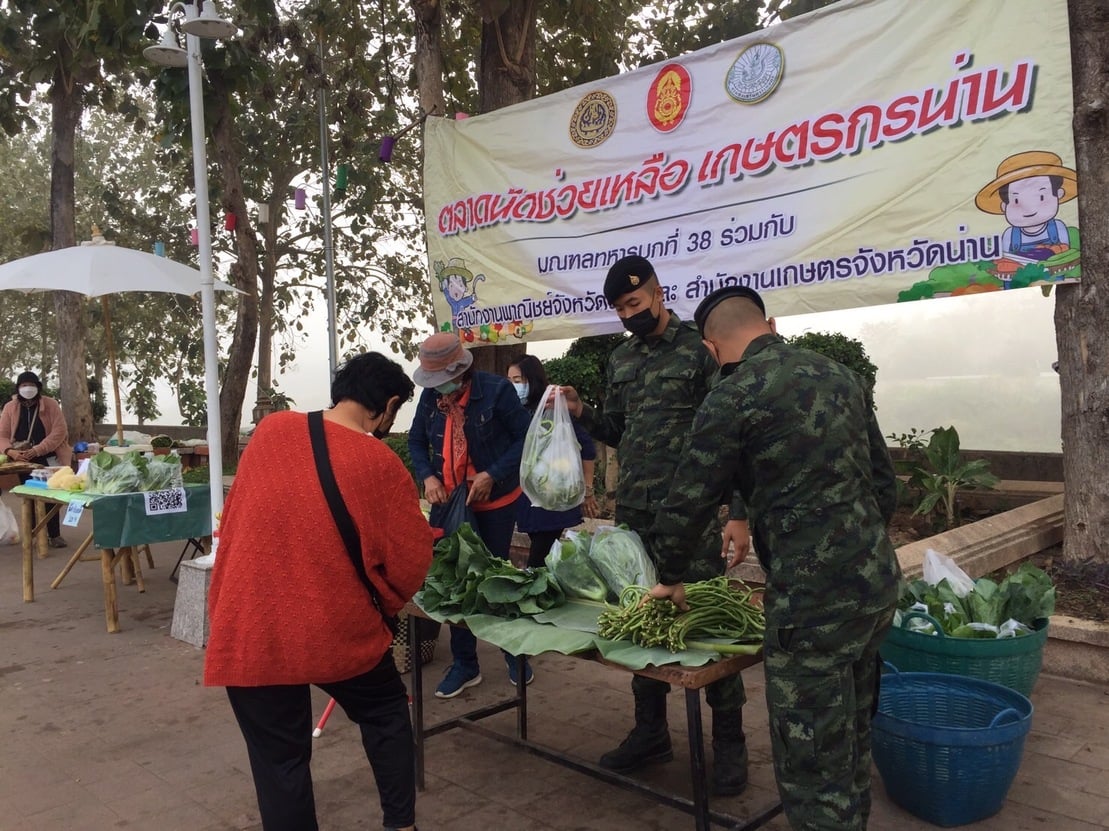 โดย มทบ.38 ร่วมกับ สนง.พาณิชย์จังหวัดน่าน เปิดพื้นที่หน้าค่ายเป็นตลาดจำหน่ายสินค้าทางการเกษตร รวมทั้งผลผลิตของโครงการทหารพันธุ์ดีน่าน เช่น ผักปลอดภัย ผักพื้นบ้าน ผลไม้จากสวนโดยตรง ผลิตภัณฑ์จักสานไม้ไผ่ และอื่นๆ อีกมากมาย เพื่อช่วยเหลือเกษตรกรที่ประสบปัญหาในด้านผลผลิตทางการเกษตรล้นตลาดและมีราคาตกต่ำ ที่ได้รับผลกระทบจากสถานการณ์การแพร่ระบาดของโรคติดเชื้อไวรัสโคโรน่า 2019 โดยมีการจำหน่ายสินค้า โดยไม่มีค่าใช้จ่ายในการตั้งร้าน ณ บริเวณหน้าค่ายสุริยพงษ์ ต.ในเวียง อ.เมืองน่าน จ.น่าน ประชาชนกลุ่มเกษตรกรมีความสุข มีรอยยิ้มและมีความซาบซึ้งใจที่ได้ร่วมกิจกรรมนี้