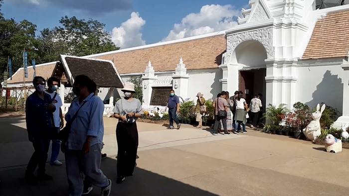 บรรยากาศการท่องเที่ยวในช่วงเทศกาลปีใหม่ที่จังหวัดน่าน ช่วงนี้เต็มไปด้วยนักท่องเที่ยว ท่ามกลางสภาพอากาศที่เย็นสบาย โดยเฉพาะอย่างยิ่งที่วัดพระธาตุแช่แห้ง พระอารามหลวง อำเภอภูเพียง จังหวัดน่าน ซึ่งเป็นพระธาตุประจำปีเกิด ของคนที่เกิดปีเถาะ เนื่องแน่นด้วยนักท่องเที่ยวจำนวนมาก ที่พากันเข้าวัดทำบุญ ไหว้พระประธานในวิหารหลวง สักการะองค์พระธาตุแช่แห้ง เพื่อเป็นสิริมงคลรับปีใหม่ 2566 ซึ่งปีนี้ตรงกับนักษัตรปีเถาะ