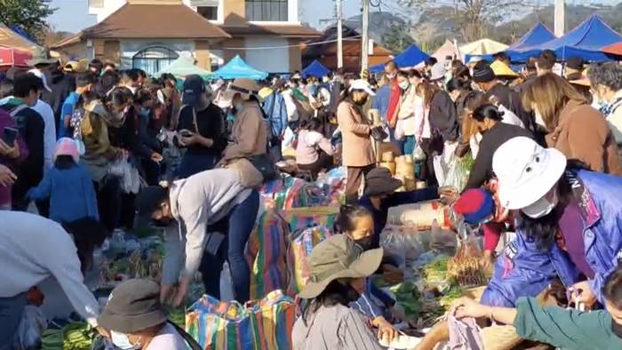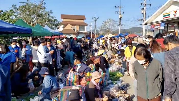 เมื่อวันที่ 31 ธันวาคม 2565 เวลา 08.00 น. ที่ด่านชายแดนห้วยโก๋น ตำบลห้วยโก๋น อำเภอเฉลิมพระเกียรติ จังหวัดน่าน บริเวณตลาดนัดชายแดน ที่เปิดให้ประชาชนทั้งฝั่งไทย-ลาว นำสินค้าทั้ง 2 ฝั่งมาแลกเปลี่ยนค้าขายกัน ทุกวันเสาร์ สุดคึกคัก เนื่องจากมีนักท่องเที่ยวมาท่องเที่ยว รวมทั้งพี่น้องชาวลาวนำสินค้ามาขาย รวมทั้งมาหาซื้อสินค้า